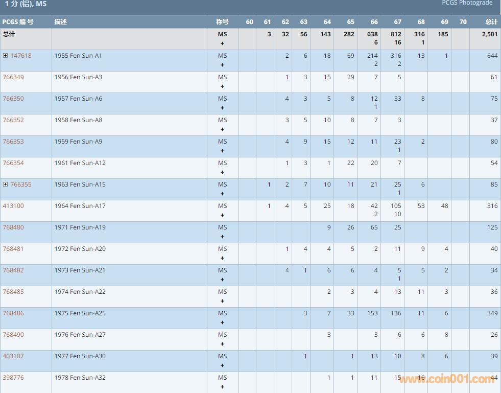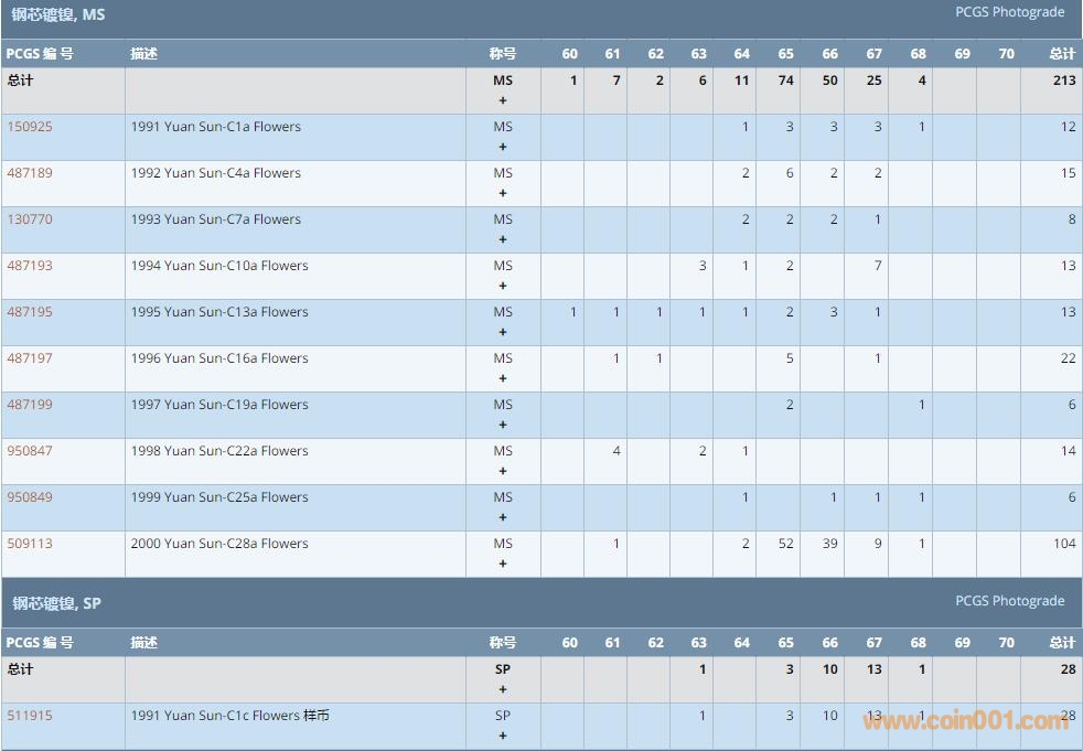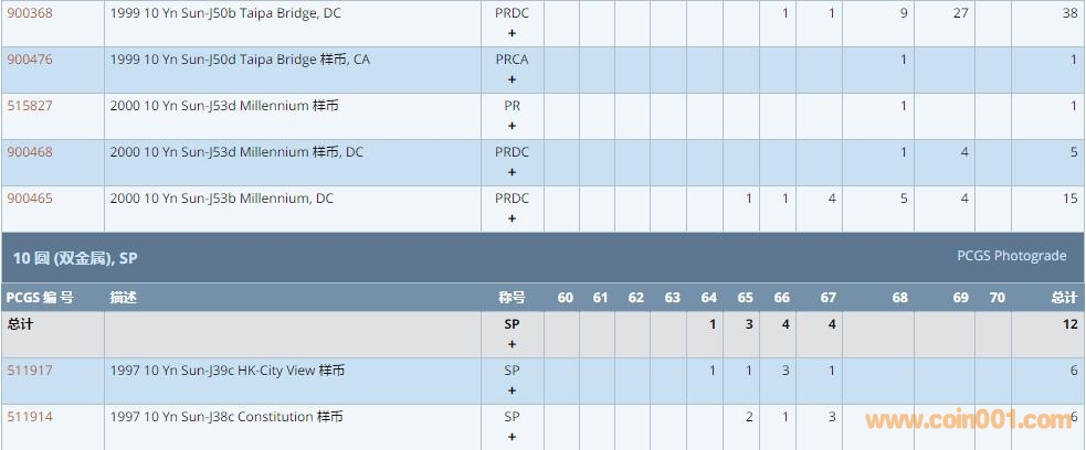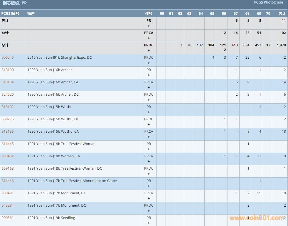 PCGS硬幣評級數(shù)量報告 ..