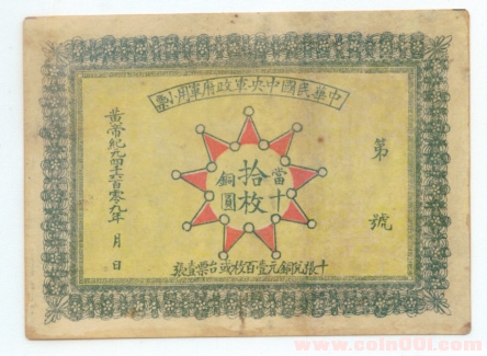 這也就是說,中華民國中央軍政府軍用小票的發(fā)行時間應(yīng)在1911年11月30日到1912年1月1日這一個月之內(nèi)。由此可見該票印制后根本還未來得及發(fā)行就又遭遇政府更迭,故此幣未正式對外發(fā)行。這也是至今為止未曾發(fā)現(xiàn)流通幣的原因。