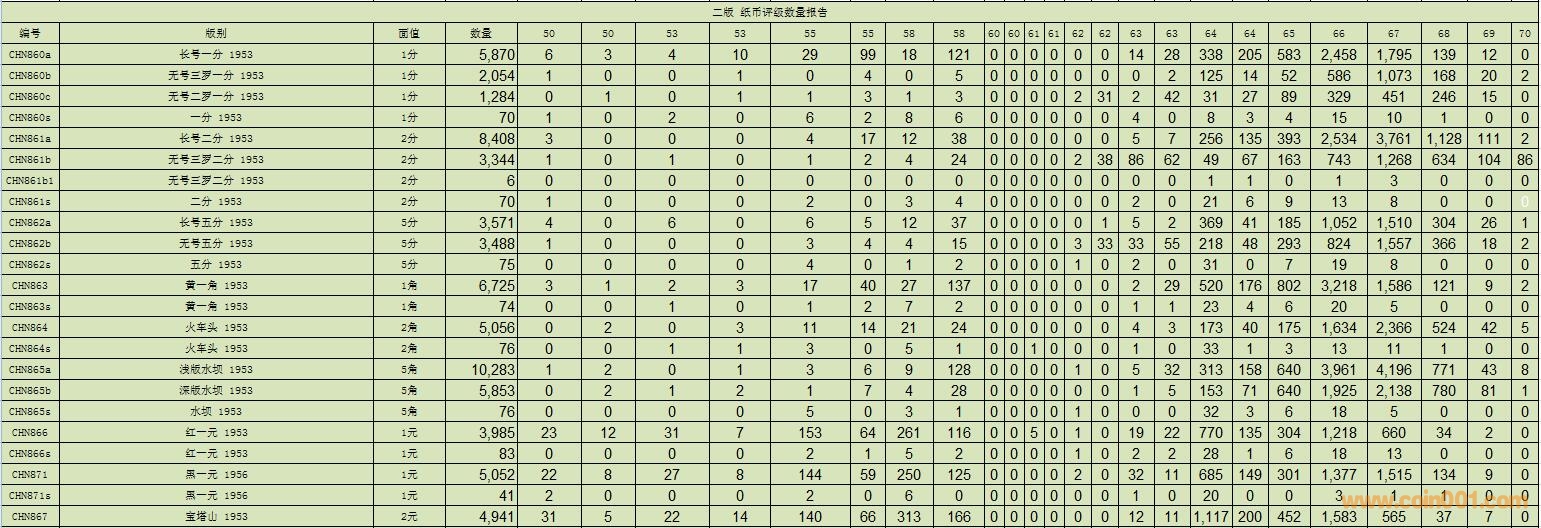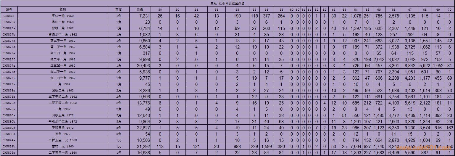 PMG紙幣評級數(shù)量報告