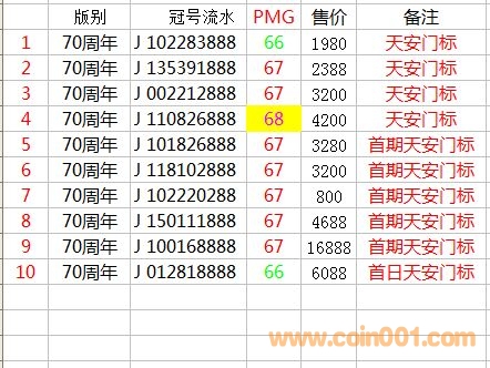 評級普通(精制)紀念幣交易