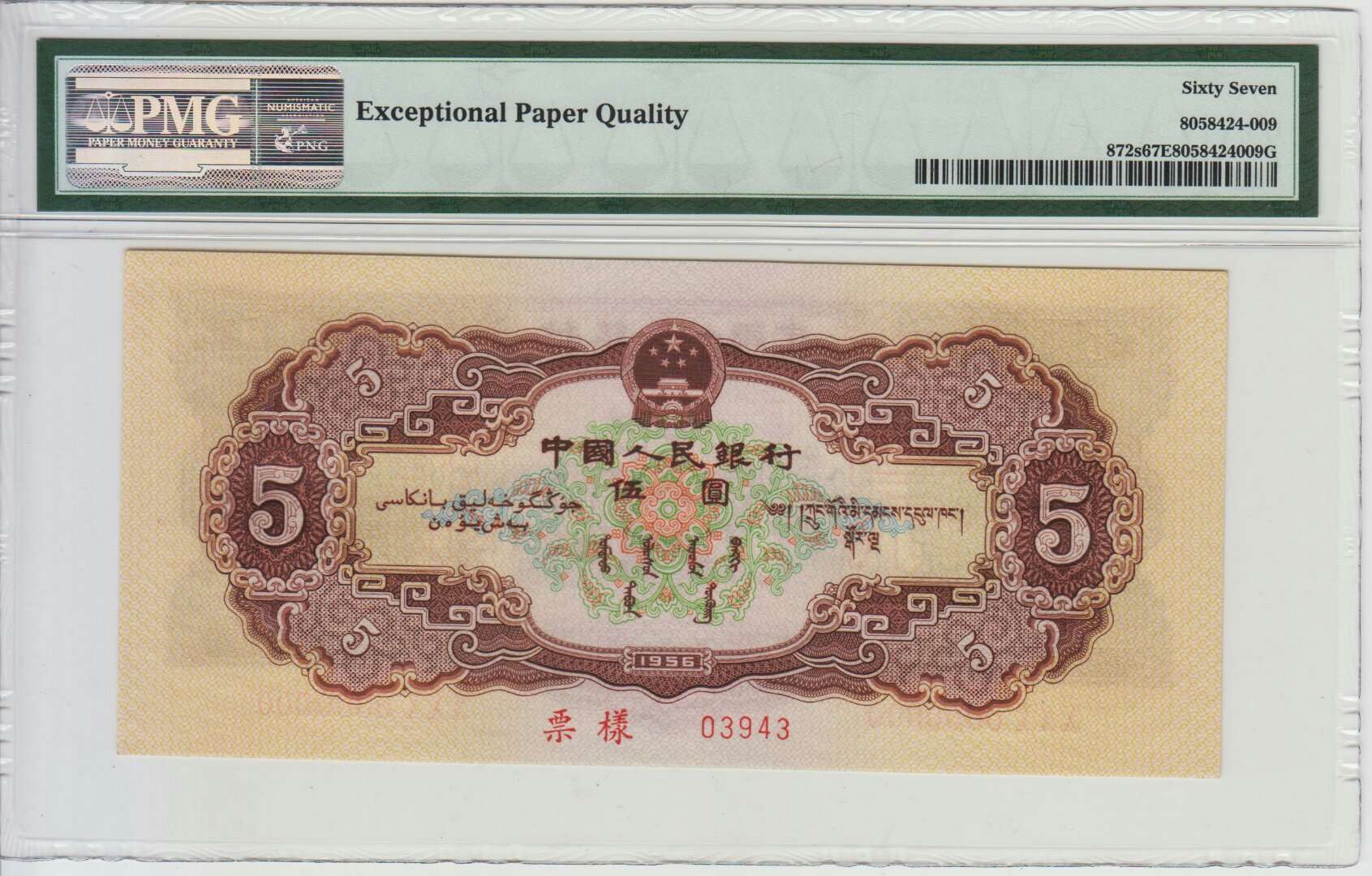 黃五元 票樣兩張 PMG67E