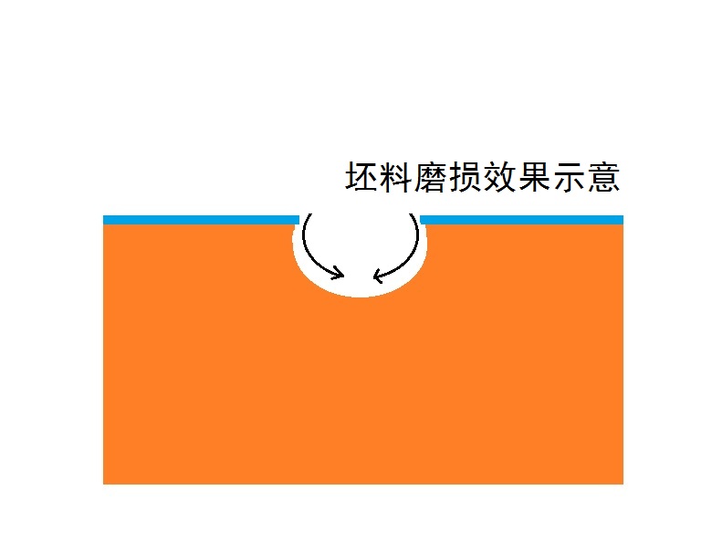 回到剛才的示意圖,鍍層下是模具主體,現(xiàn)在鍍層因為一些偶然原因出現(xiàn)了一個很小很小的破皮,示意為看到藍色的鍍層缺了一個小口。