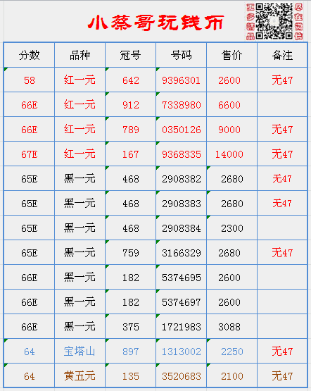 66E連號黑一元,紅一元 ..