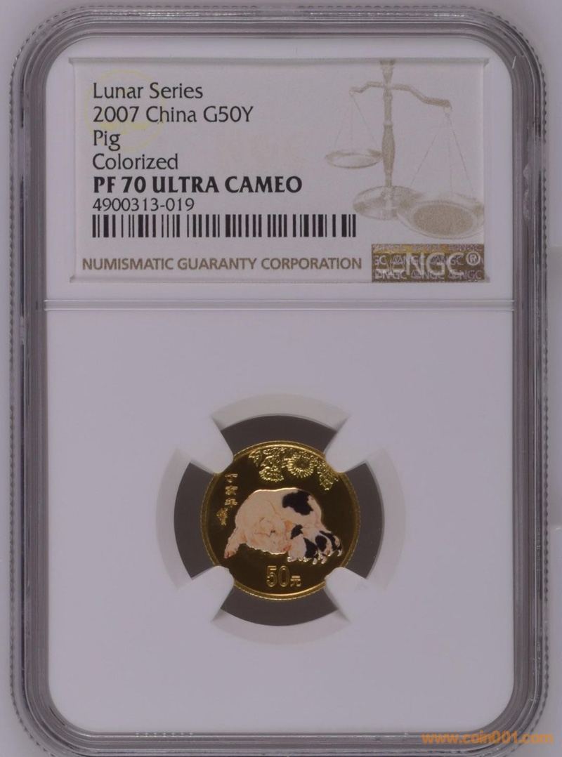 2007年彩金豬70分 2750/枚 帶證