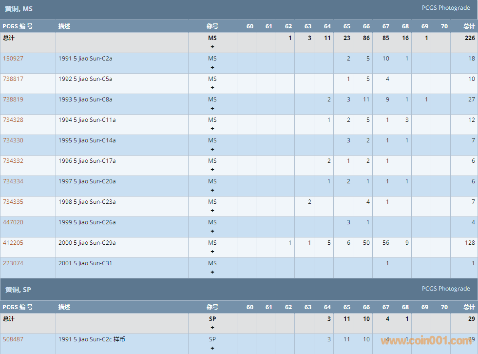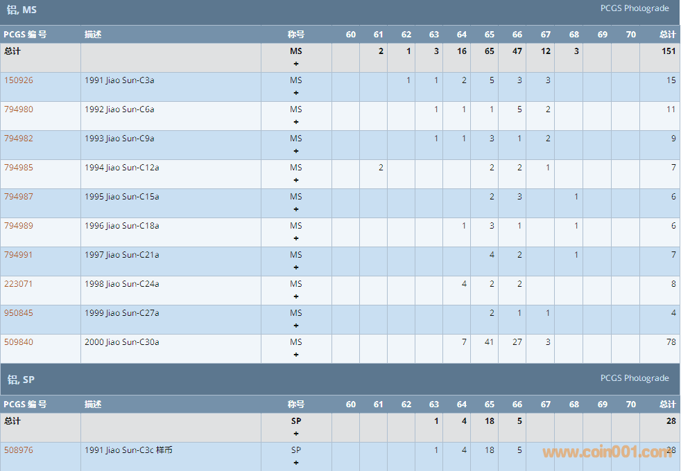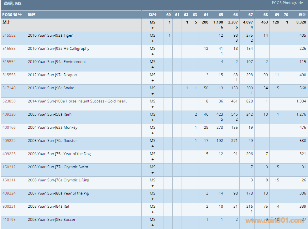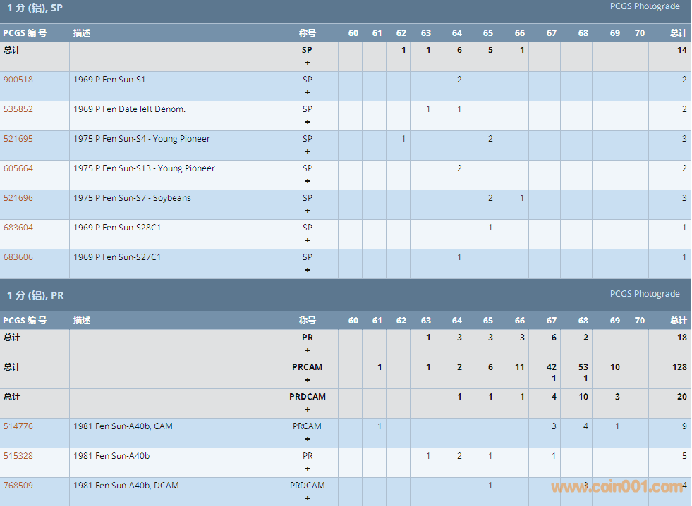 PCGS硬幣評(píng)級(jí)數(shù)量報(bào)告 ..