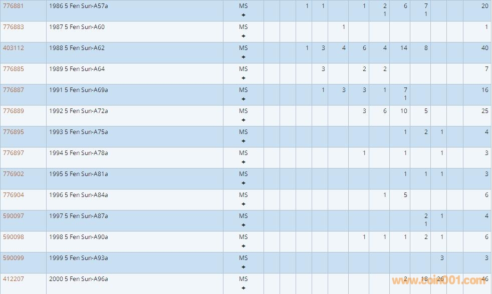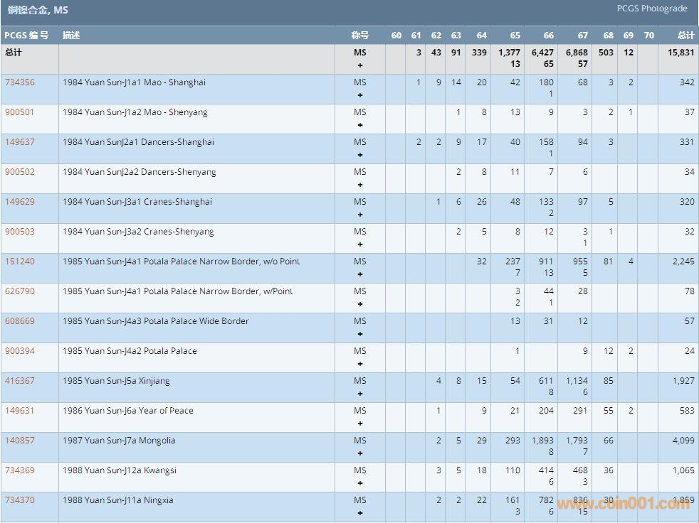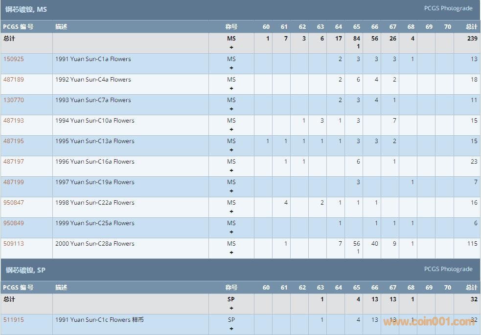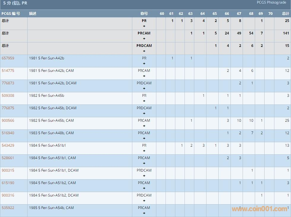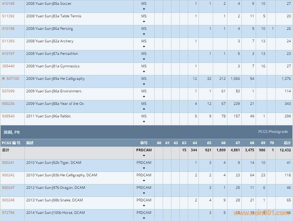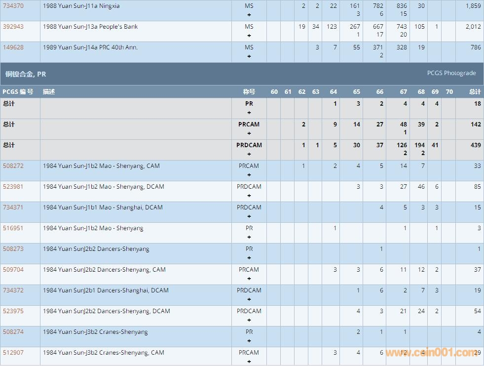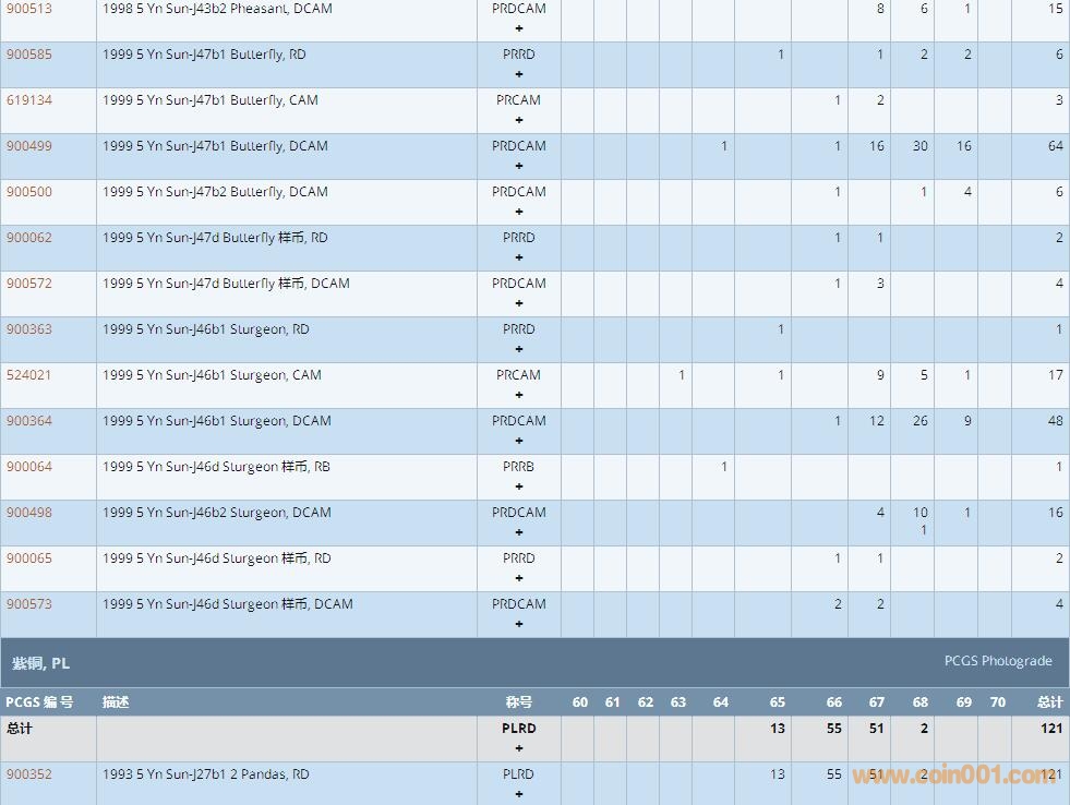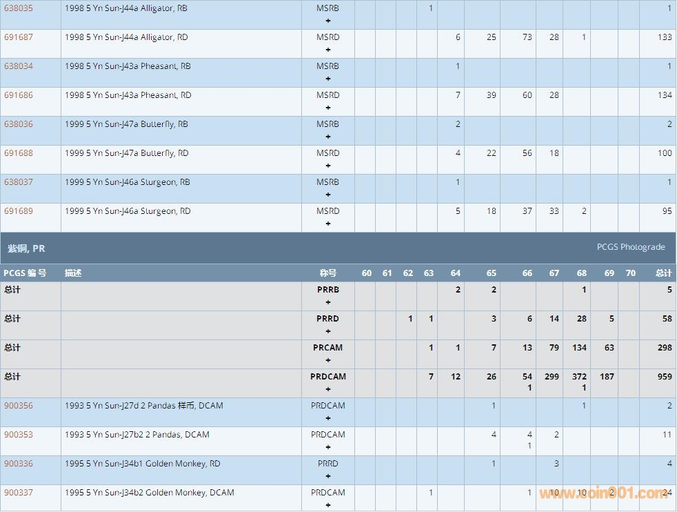 PCGS硬幣評級數(shù)量報告 ..