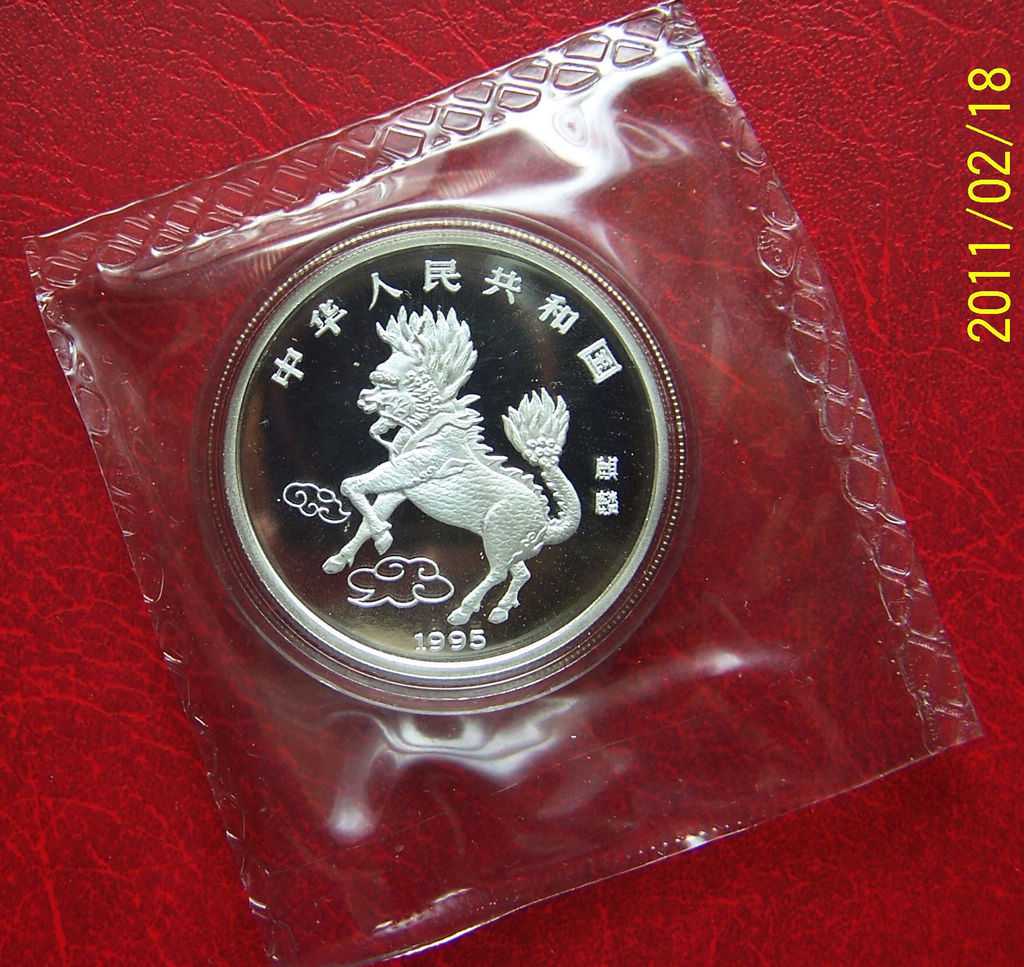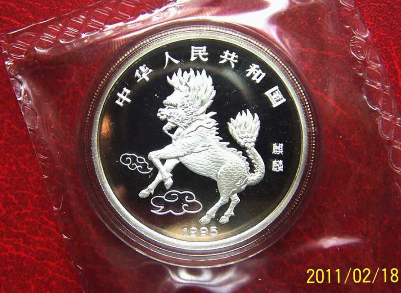 低價2500元售稀少的1995年精制麒麟銀幣壹枚