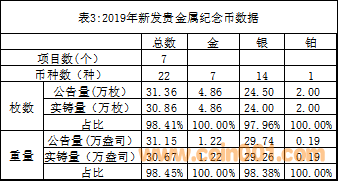 2019年發(fā)行增量是指2019年新發(fā)幣種,由于統(tǒng)計原因,其中不包括投資幣和紀(jì)念幣中的熊貓精制幣。