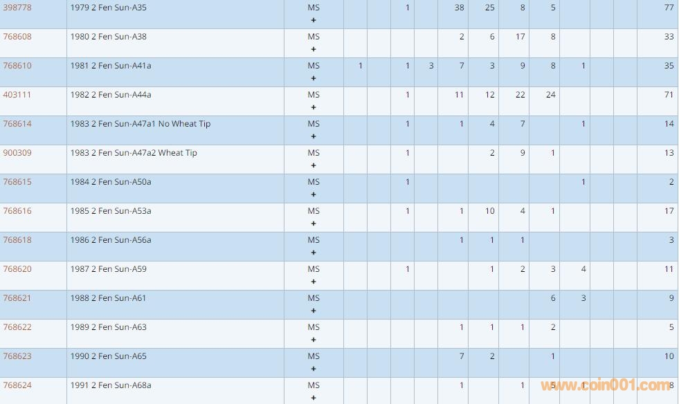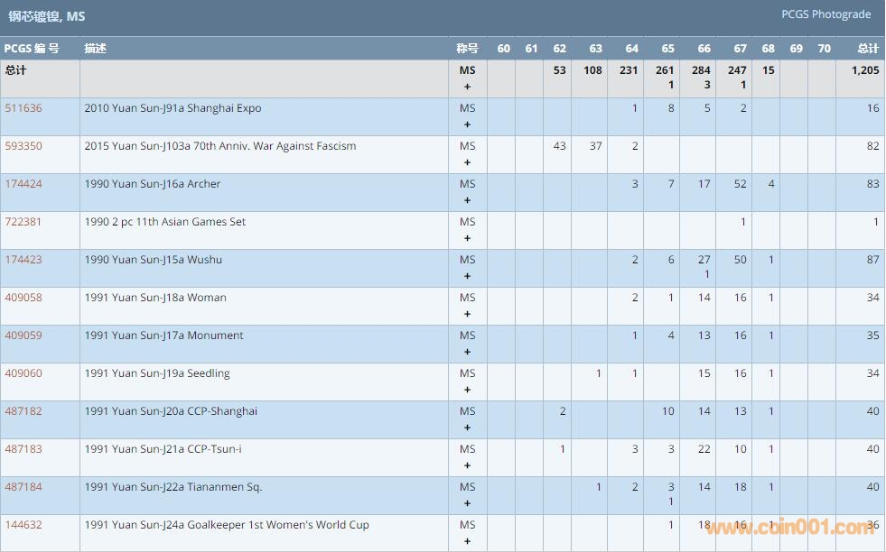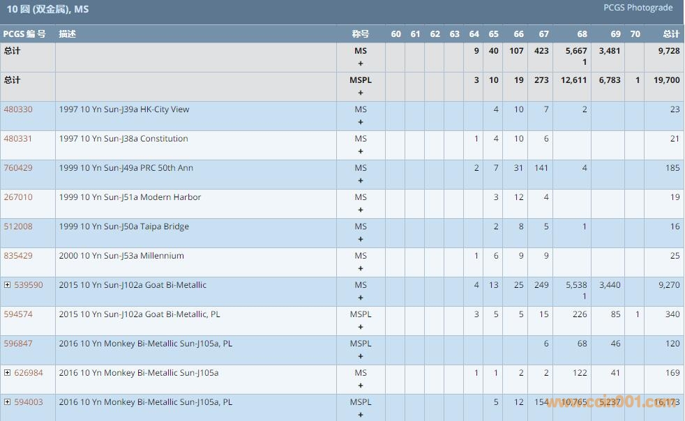 PCGS硬幣評級數(shù)量報告 ..