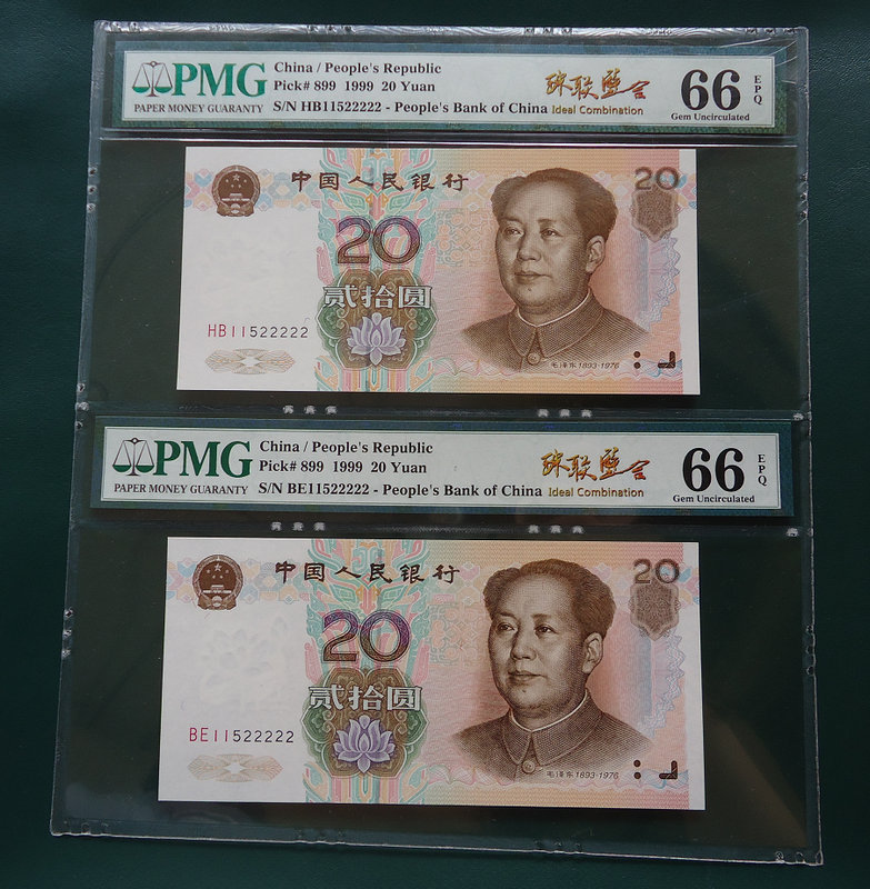 PMG 66分 9920 珠聯(lián)璧合是二張一模一樣的號(hào)碼 115 22222 二張都是五同2 +雙紅1概念 銷售18000元!