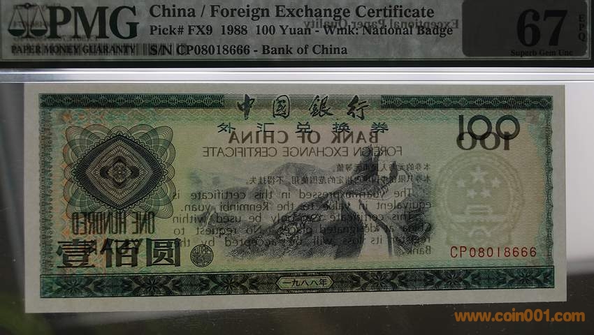PMG67E 88年外匯券100元 ..