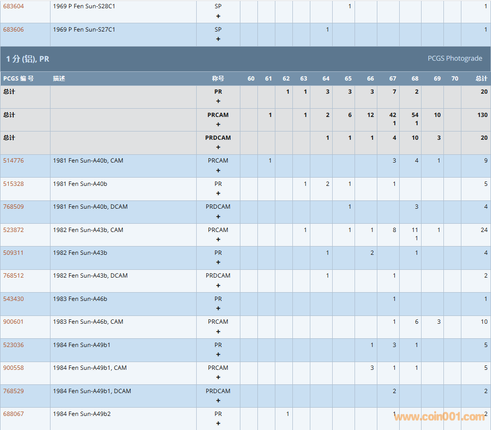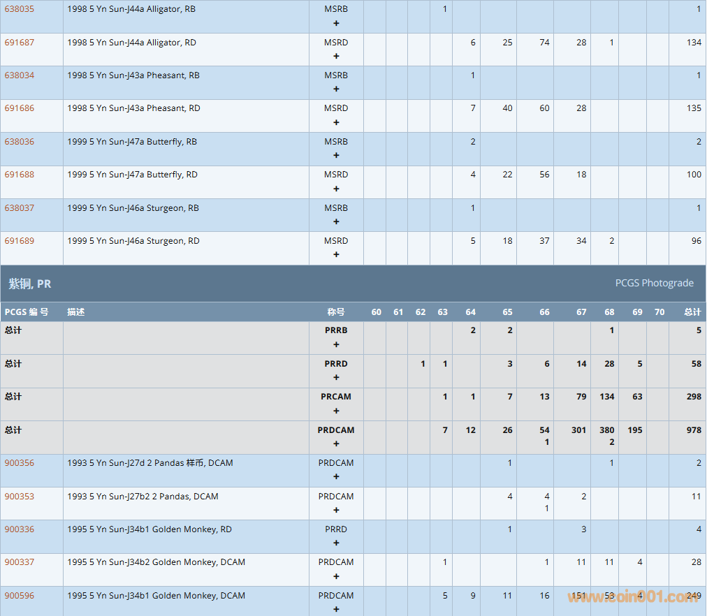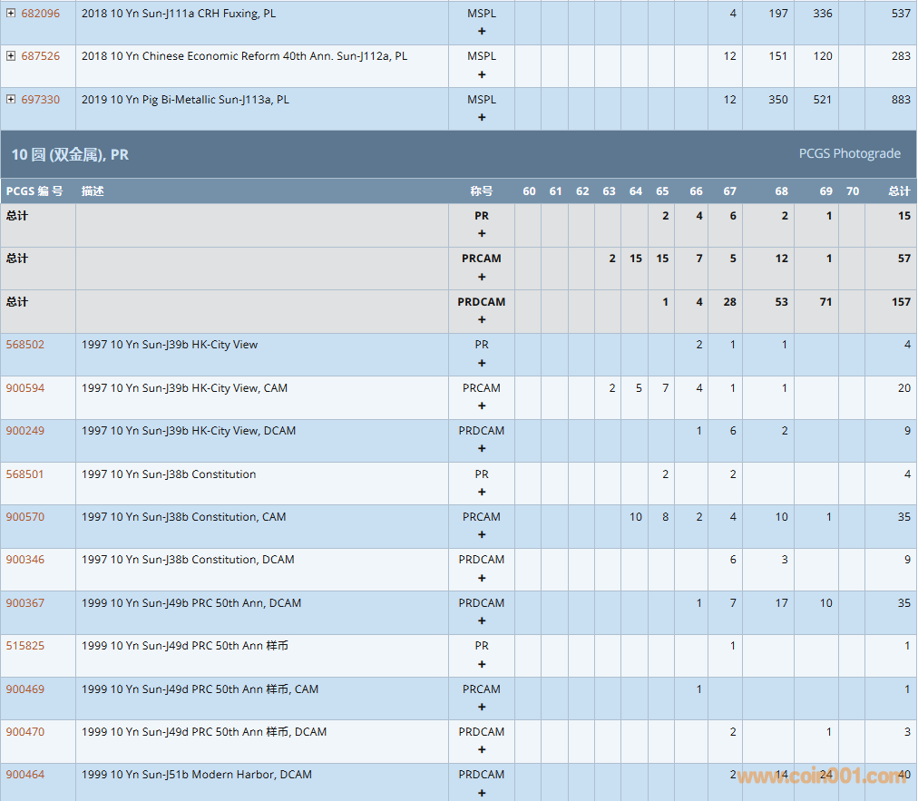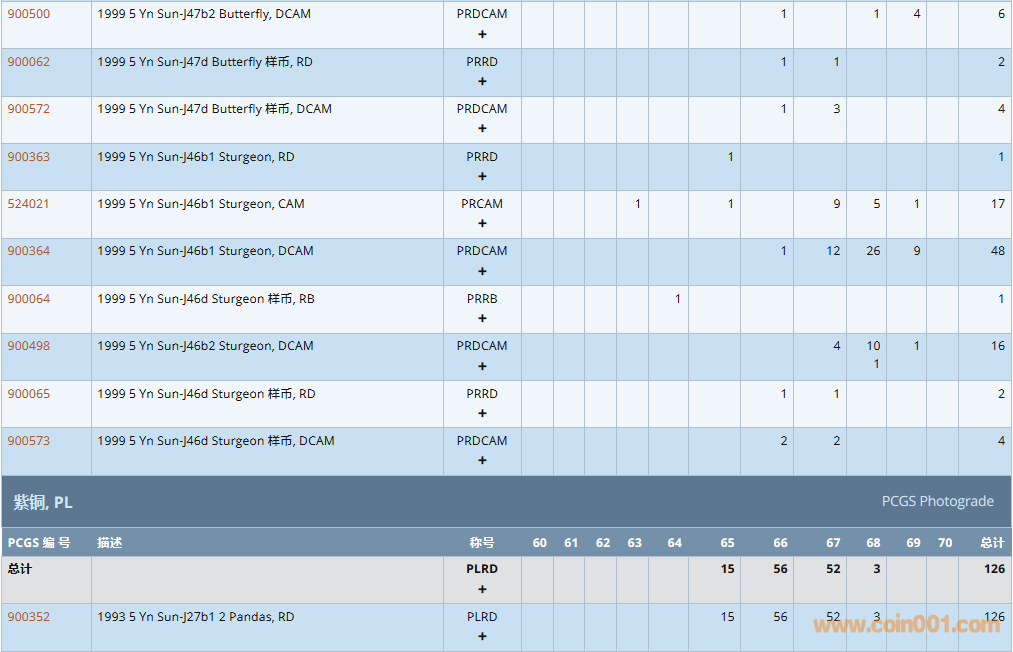 PCGS硬幣評(píng)級(jí)數(shù)量報(bào)告
