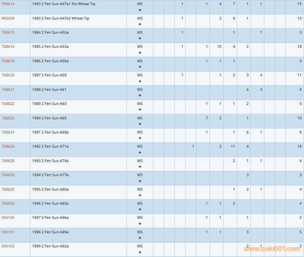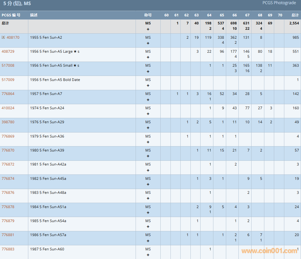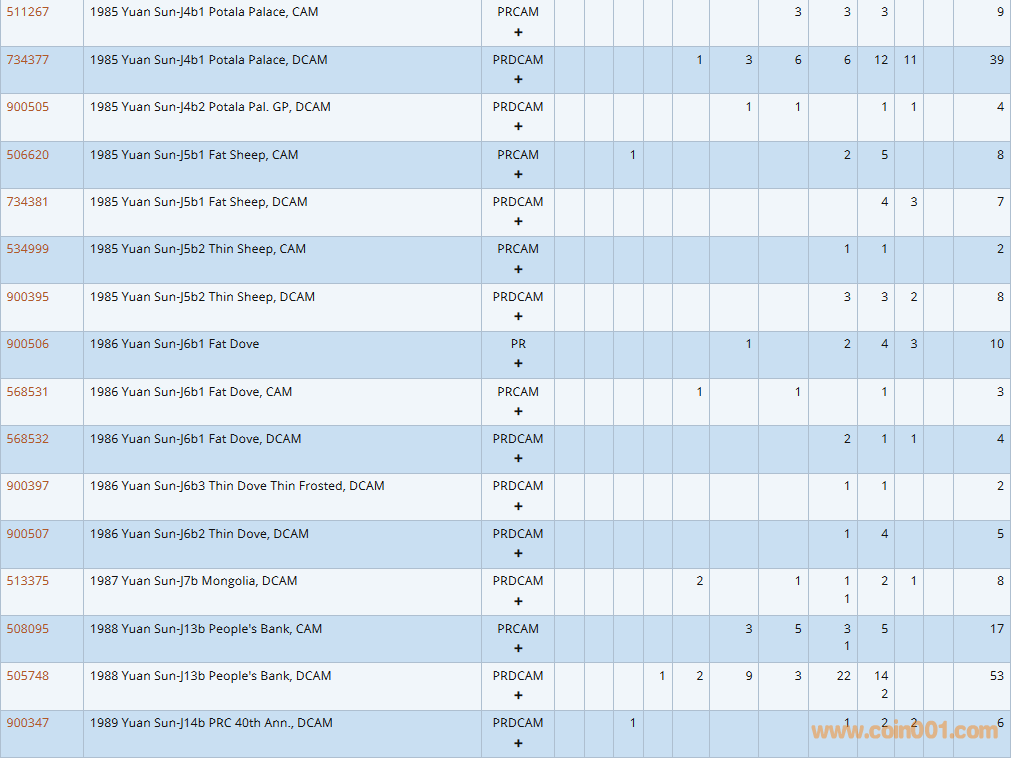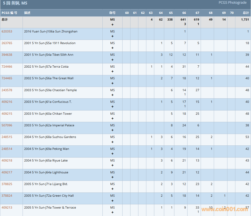 PCGS硬幣評(píng)級(jí)數(shù)量報(bào)告
