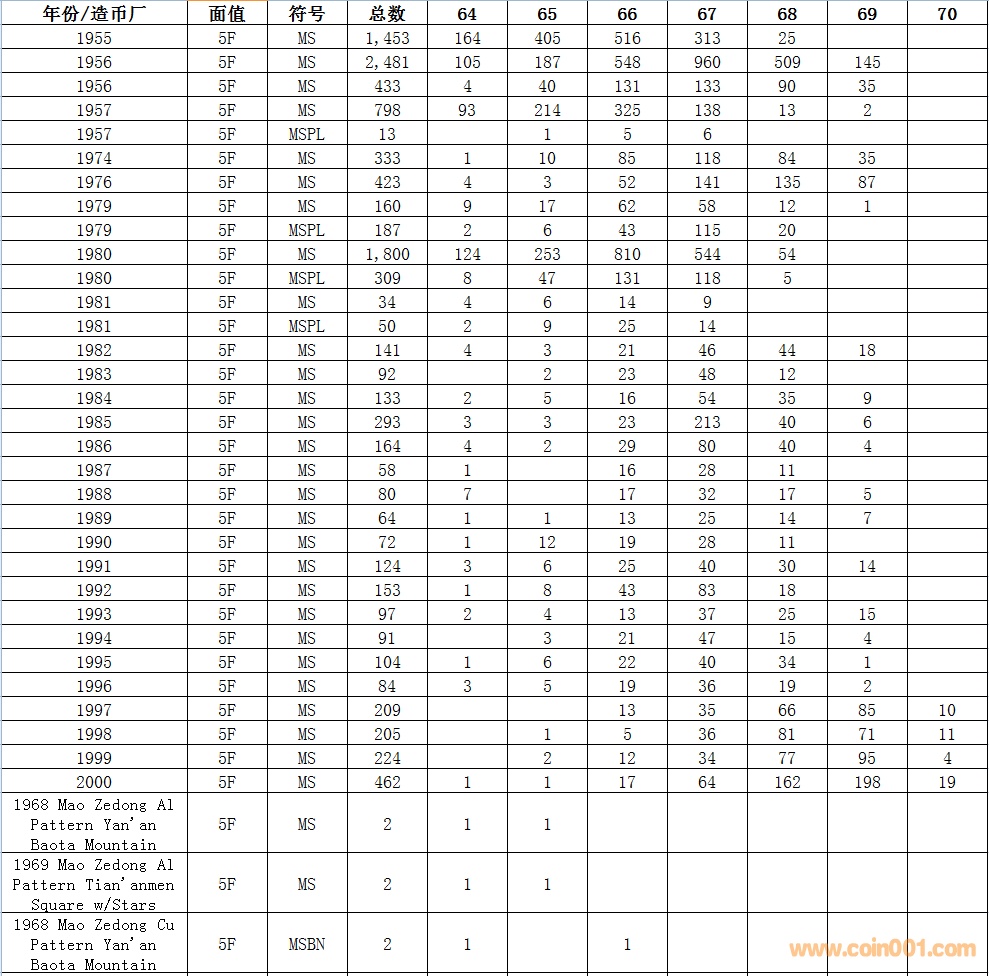 NGC硬幣評級數(shù)量報告 ..