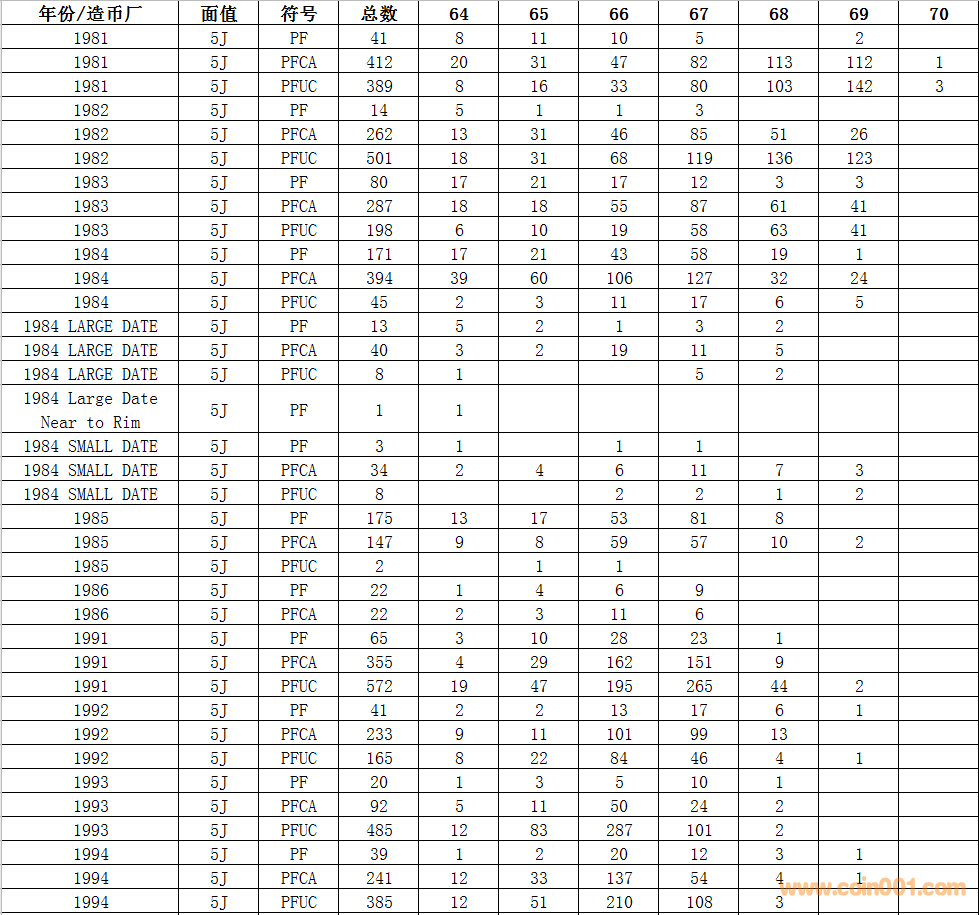 NGC硬幣評(píng)級(jí)數(shù)量報(bào)告 ..