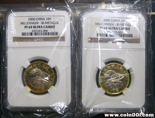3.精制幣新世紀(jì)評(píng)級(jí)兩枚,帶原始包裝(無(wú)鈔),750元/枚;