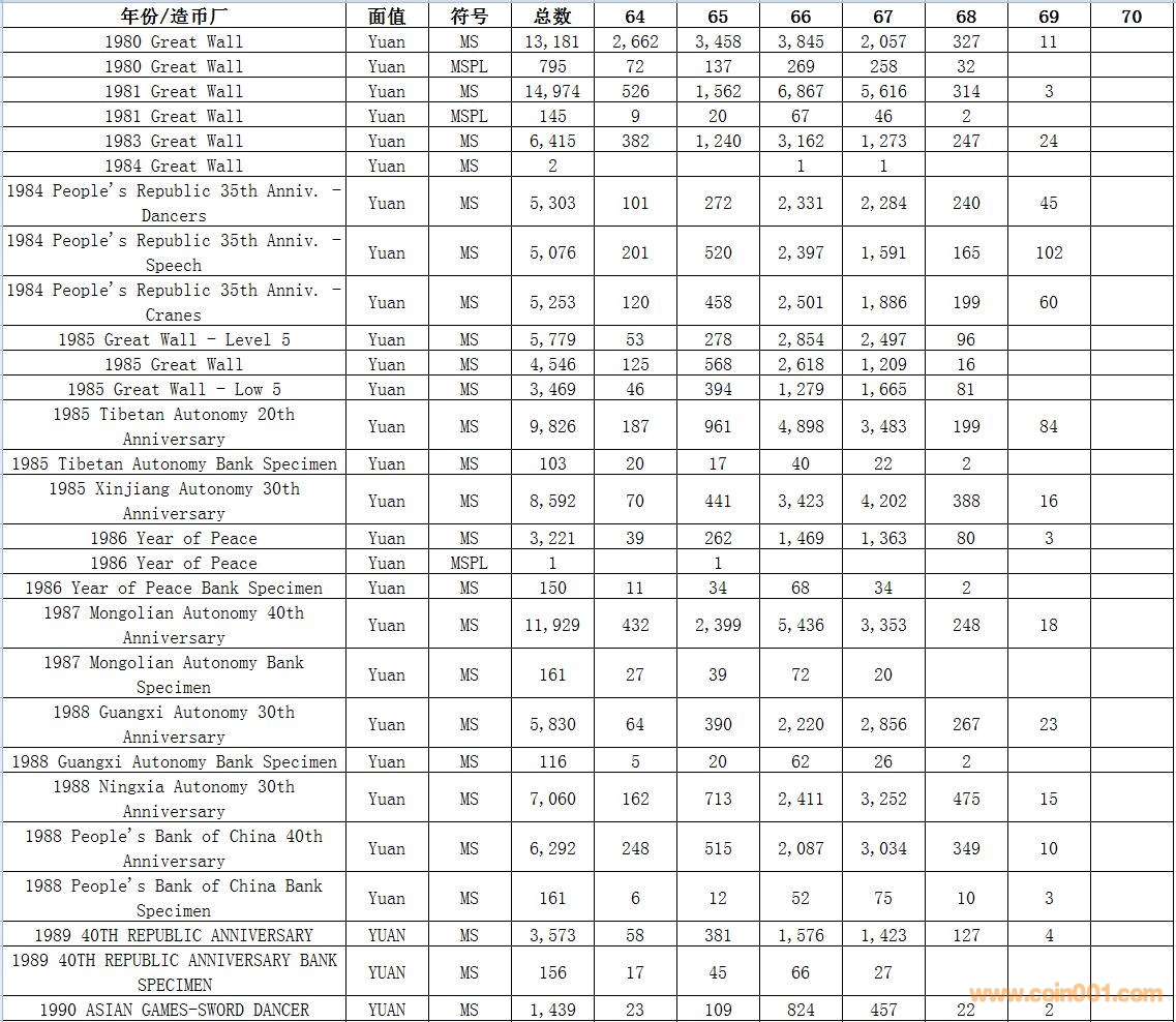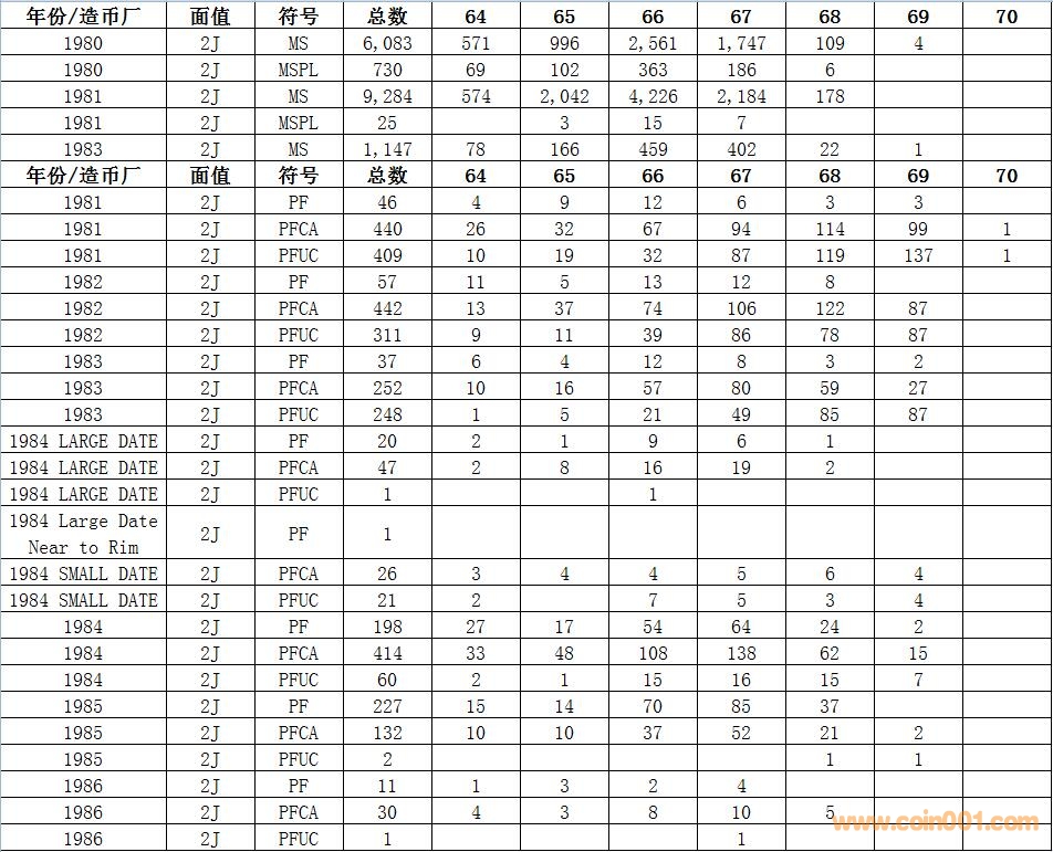 NGC硬幣評級數(shù)量報告 ..