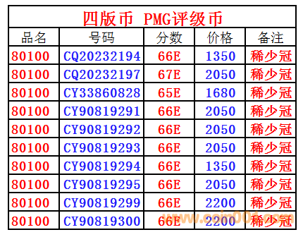 惠出PMG65/66/67E 80100  ..