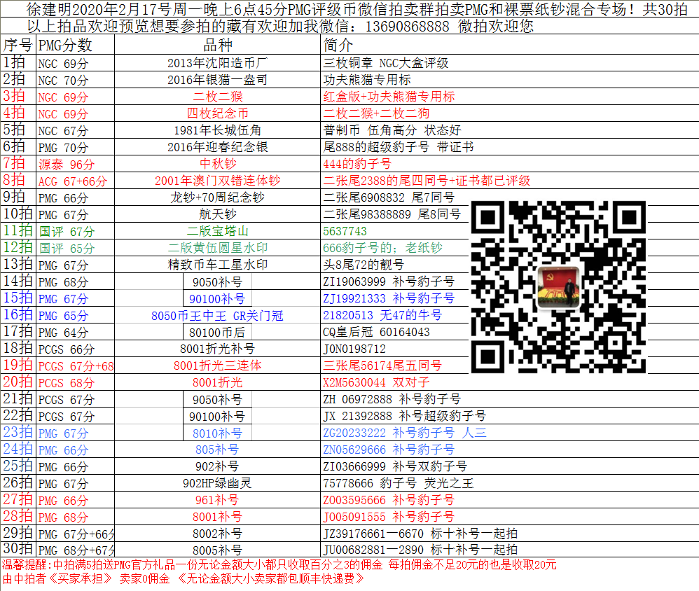 評級普通(精制)紀念幣交易