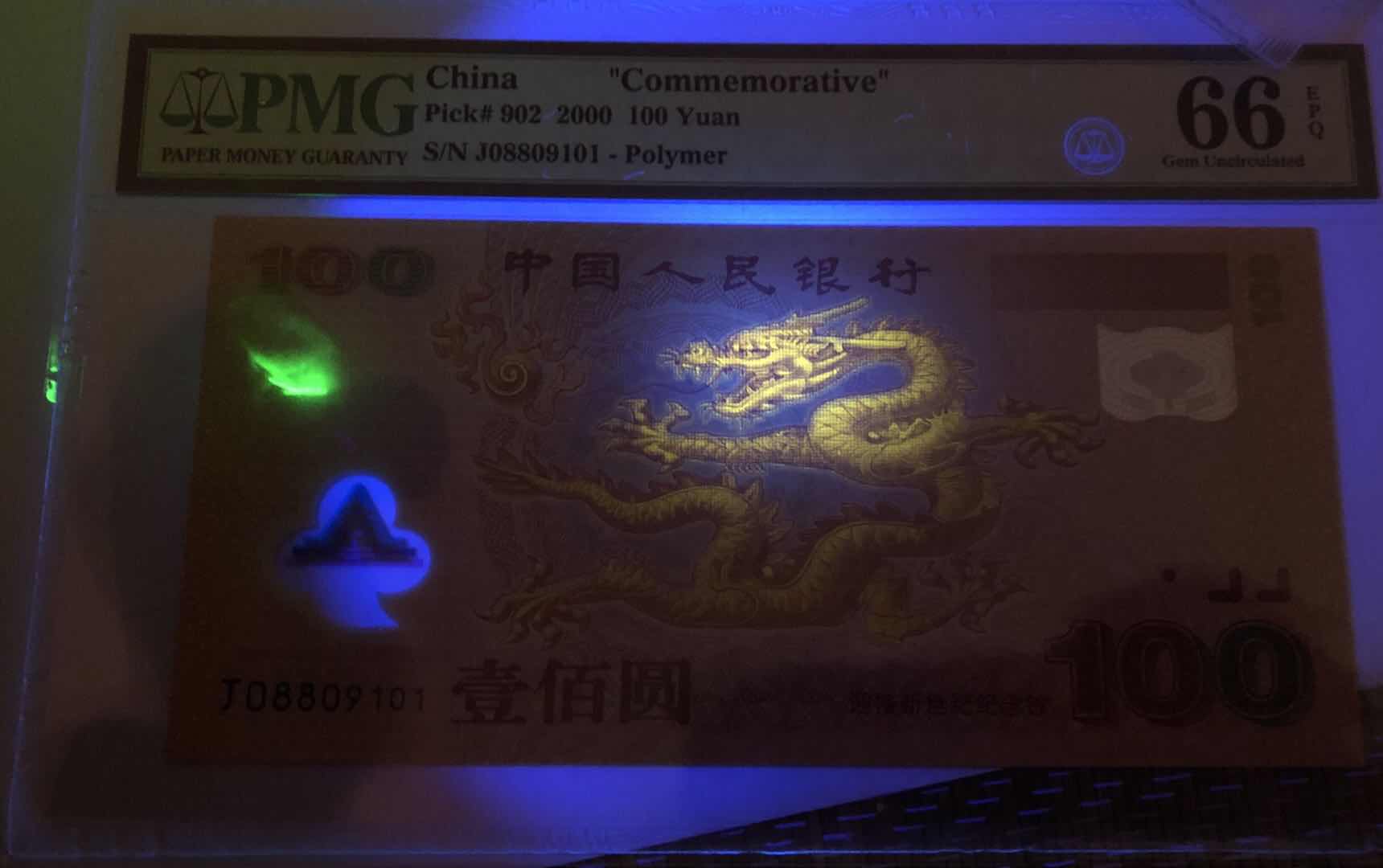 PMG66分強(qiáng)熒光龍鈔無(wú)3457