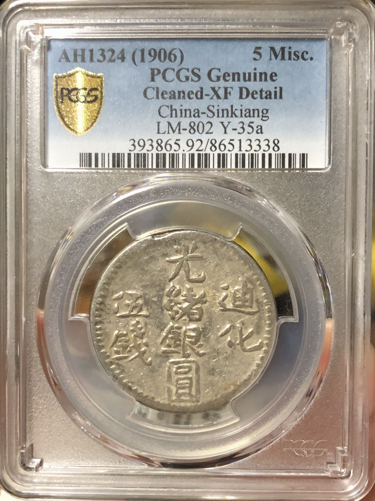新疆光緒銀元 伍錢 PCG ..