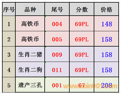 評級普通(精制)紀念幣交易