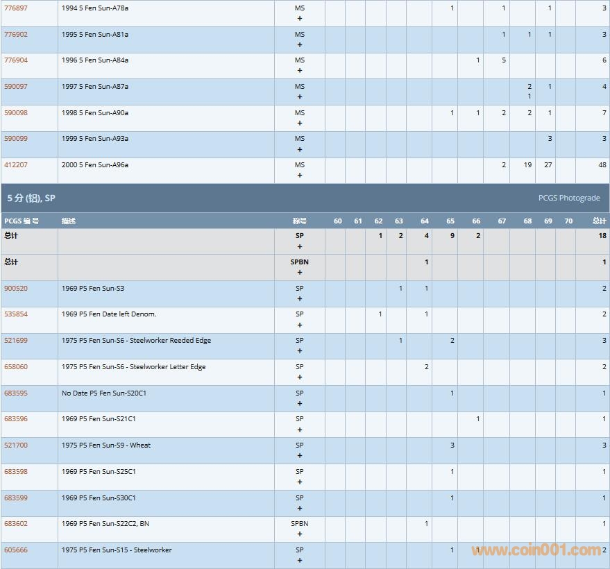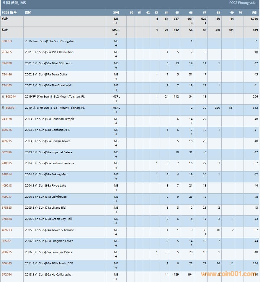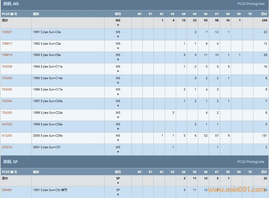 PCGS硬幣評(píng)級(jí)數(shù)量報(bào)告( ..