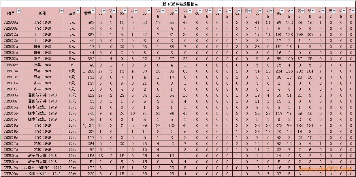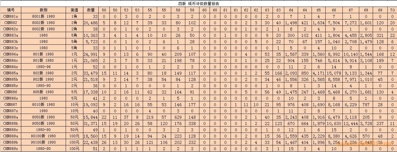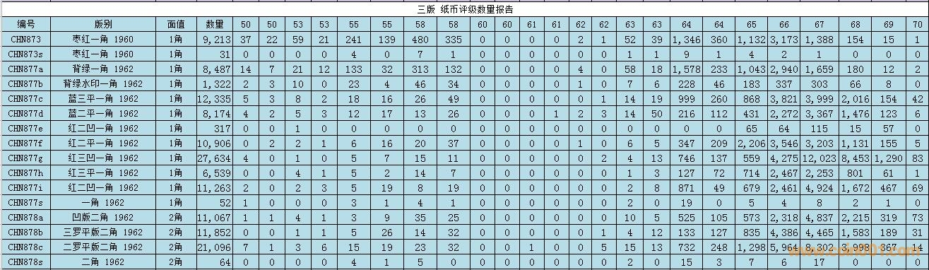PMG紙幣評級數(shù)量報告