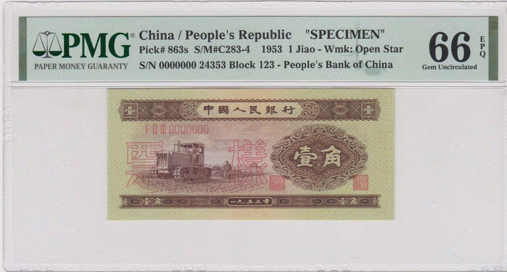 二版 一角票樣 PMG66E