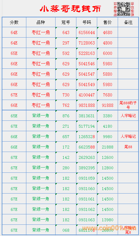 67無(wú)47尾8尾88連號(hào)背綠 ..