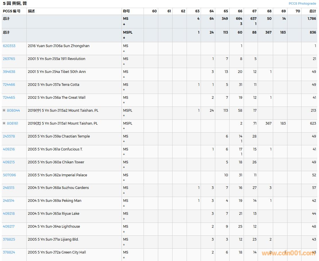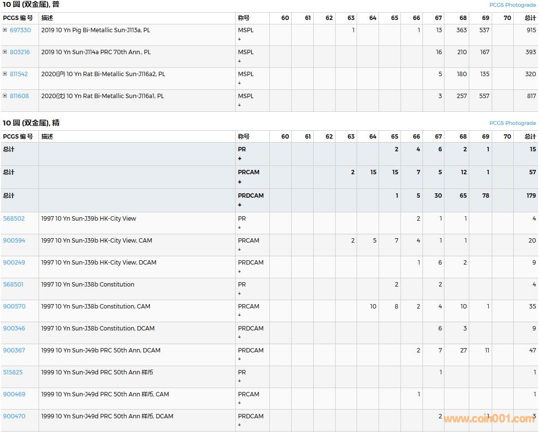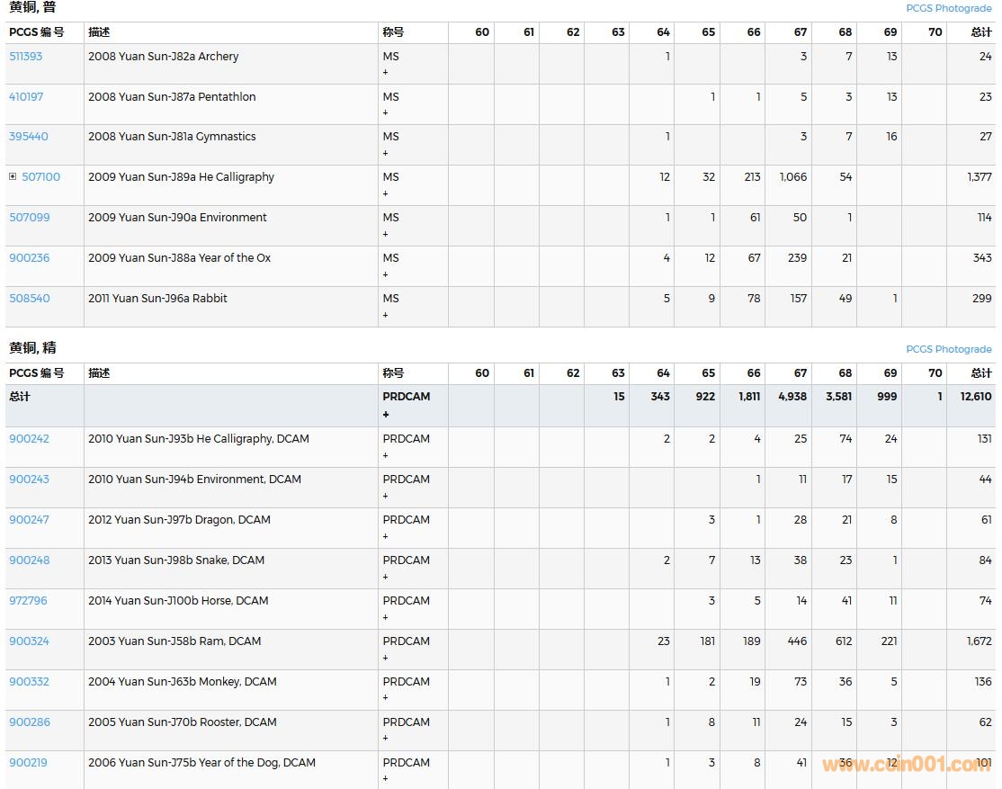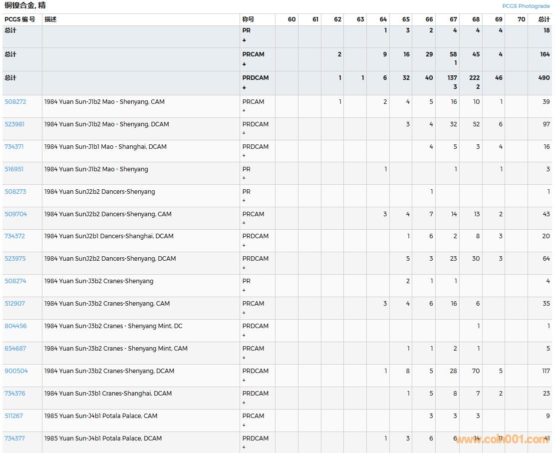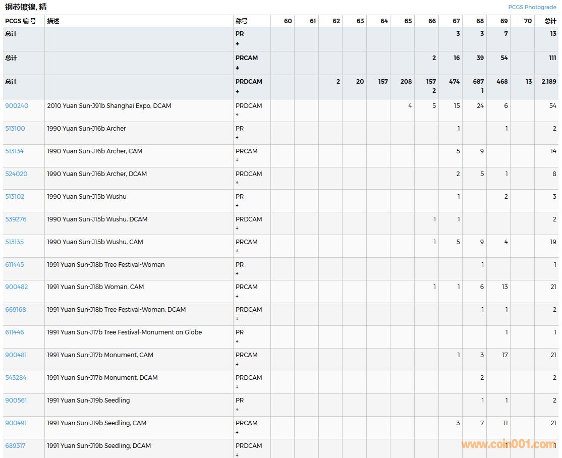 PCGS硬幣評(píng)級(jí)數(shù)量報(bào)告( ..