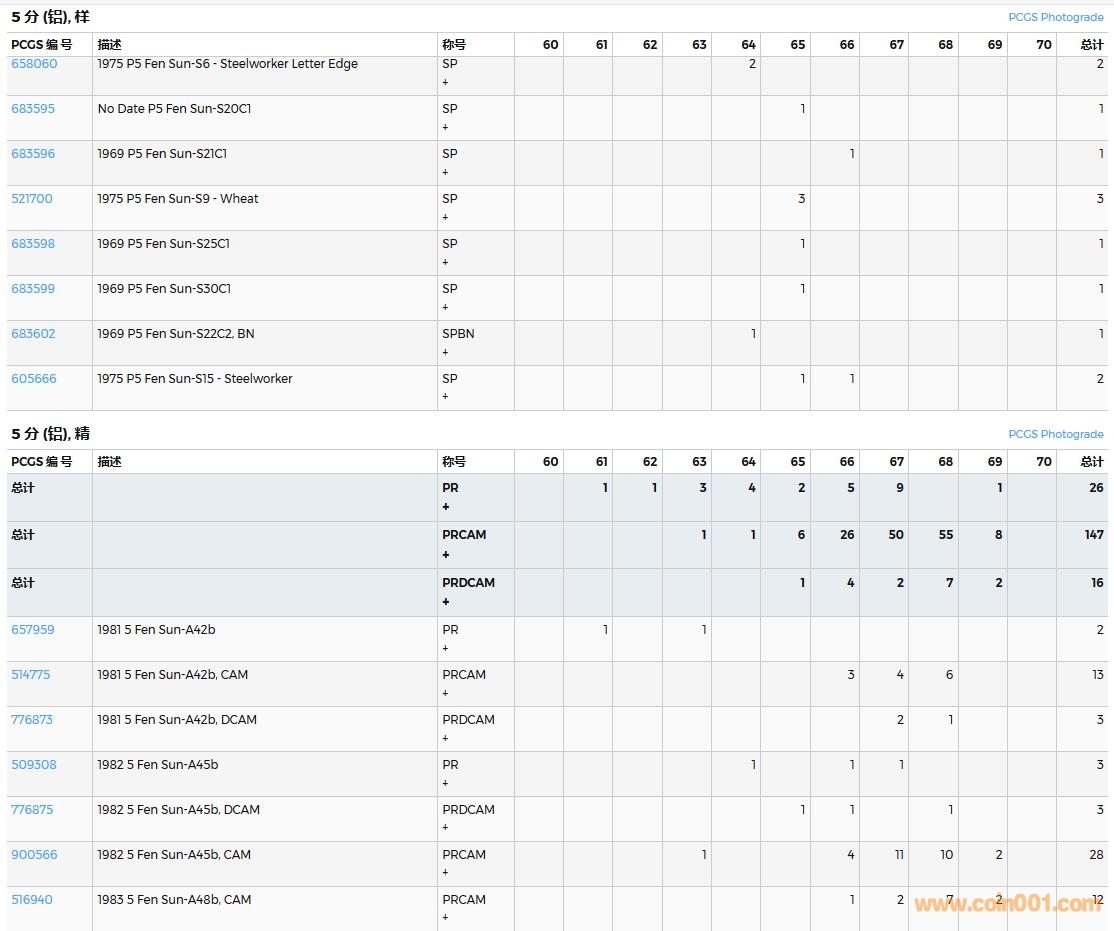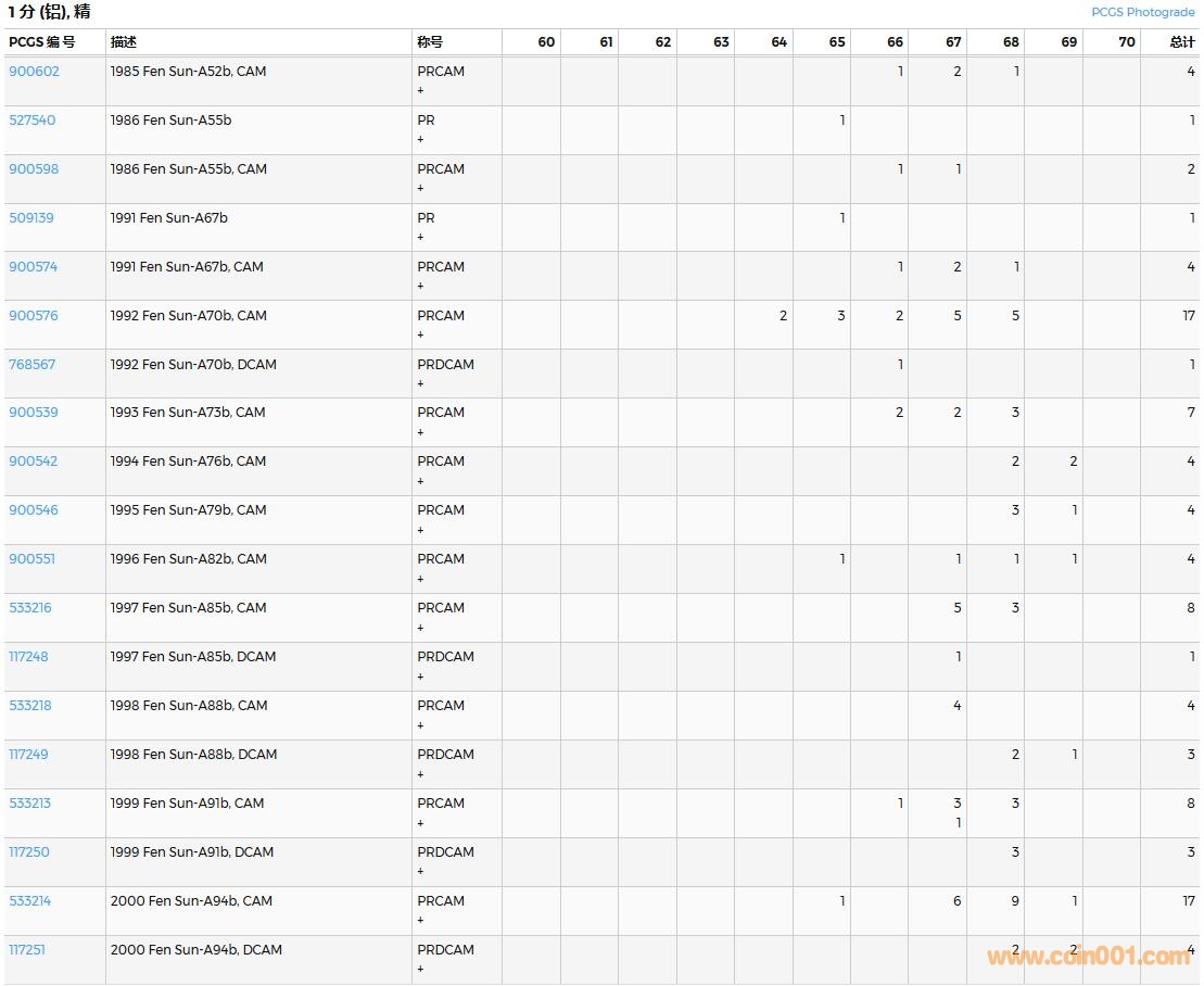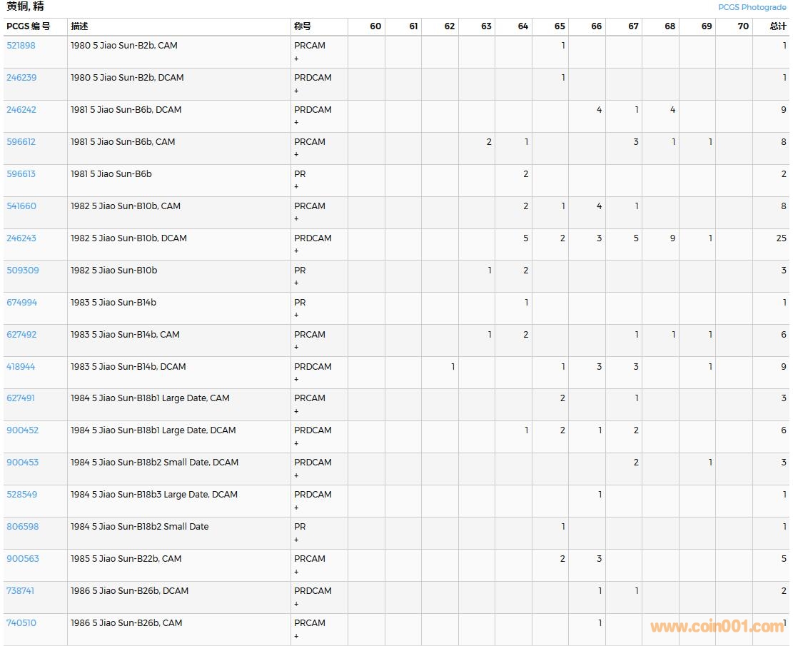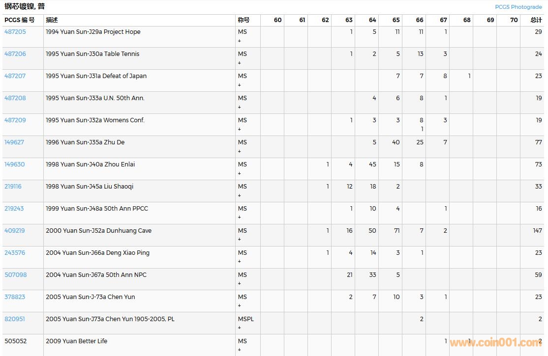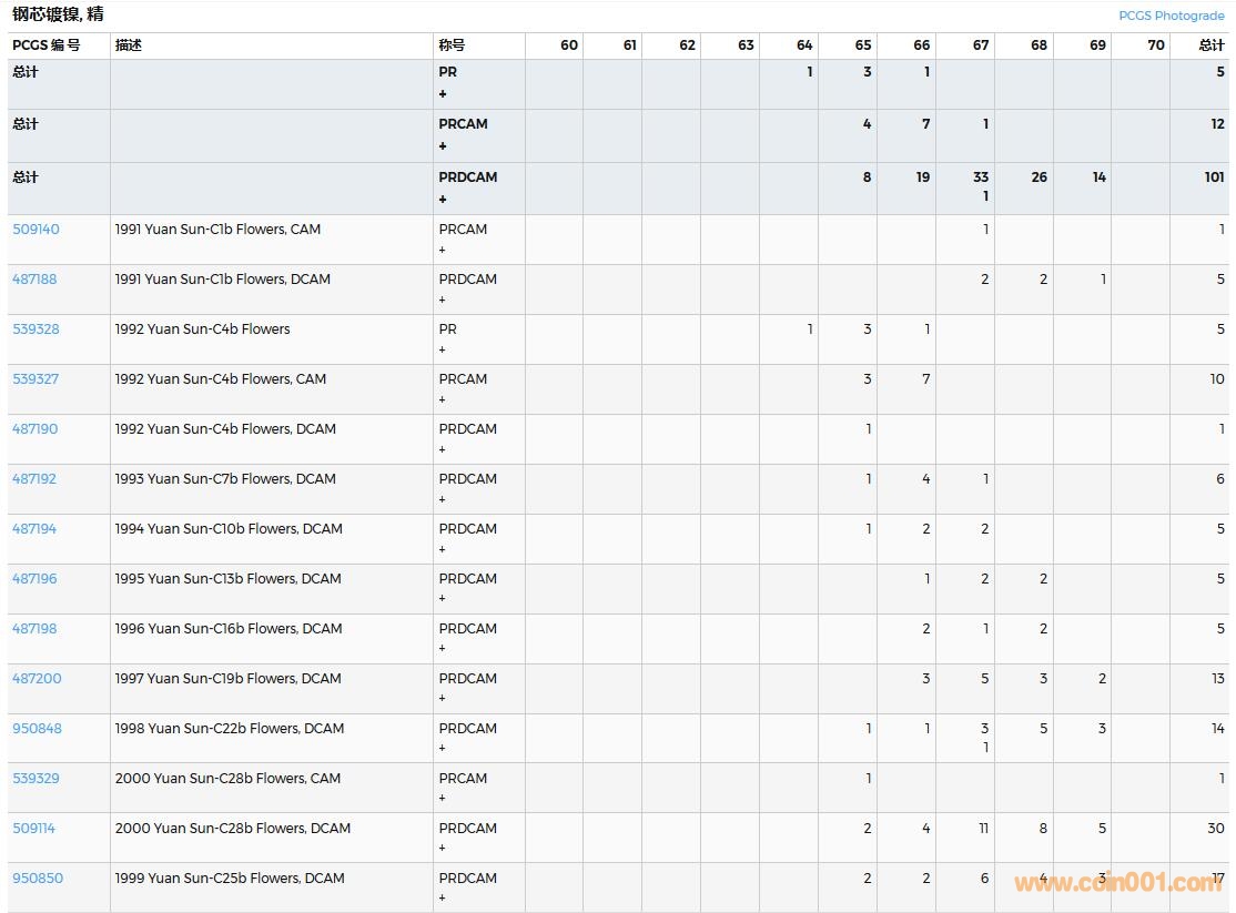 PCGS硬幣評(píng)級(jí)數(shù)量報(bào)告( ..
