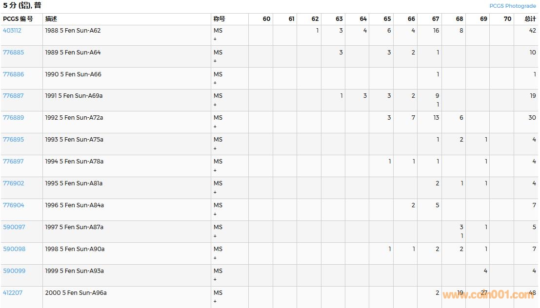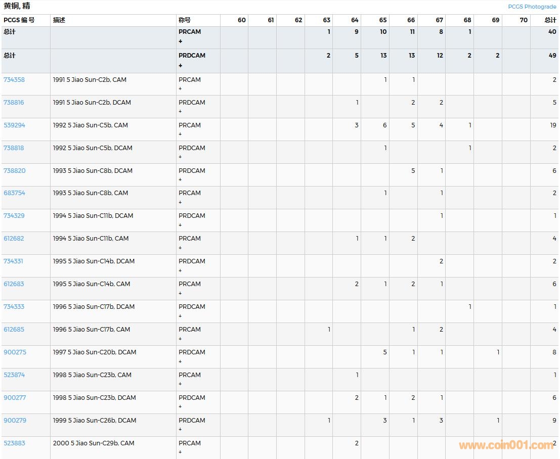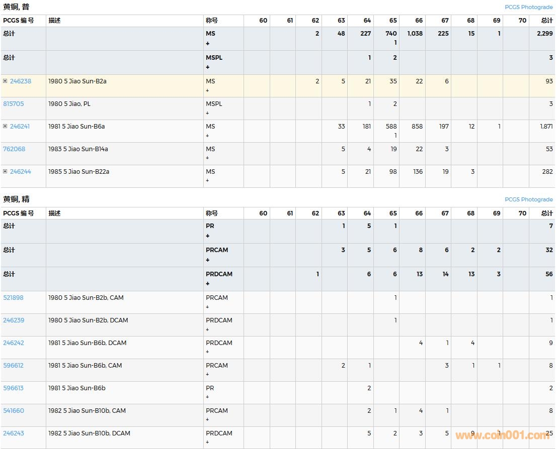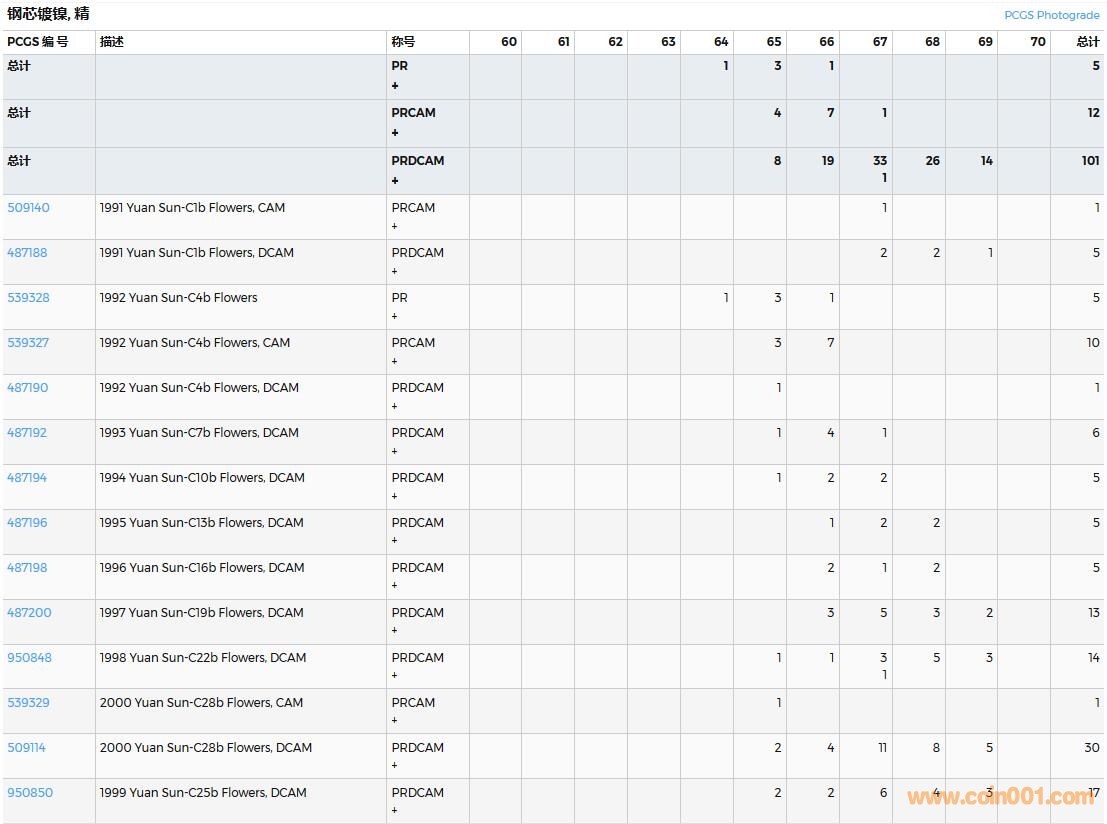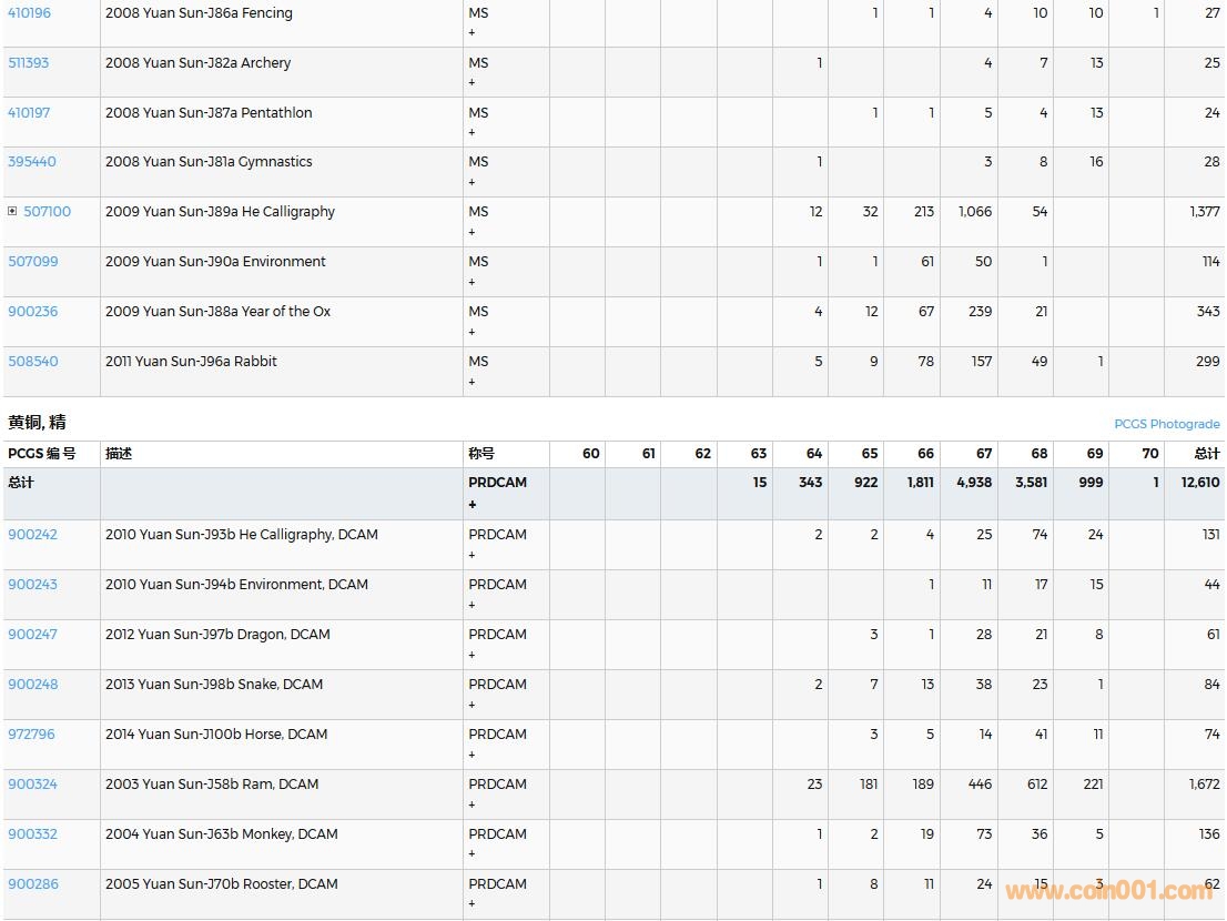 PCGS硬幣評級數(shù)量報告( ..