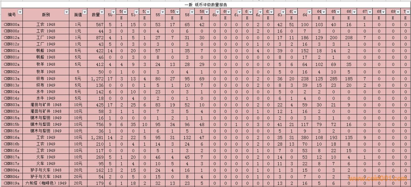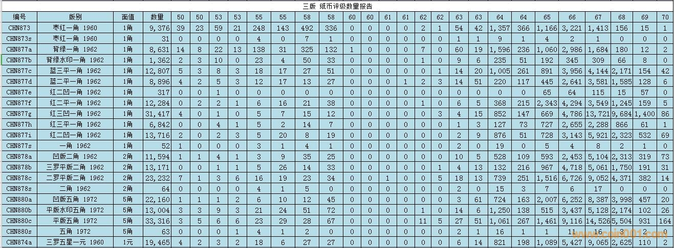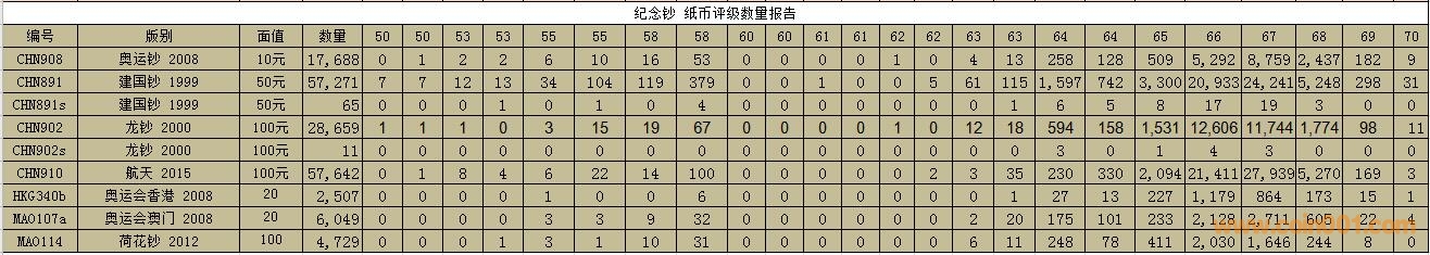 PMG紙幣評級數(shù)量報告