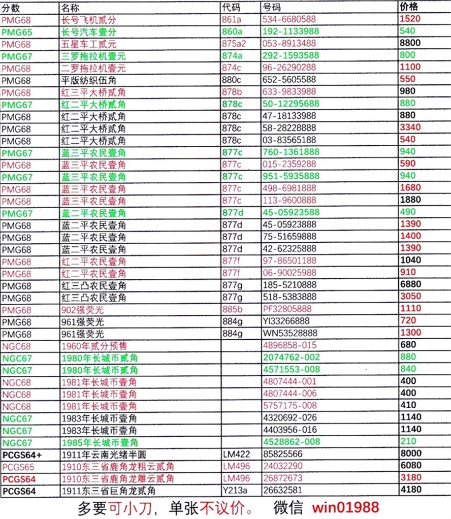 評(píng)級(jí)紙幣交易