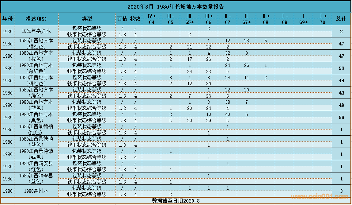 1980年長(zhǎng)城地方本估數(shù) ..