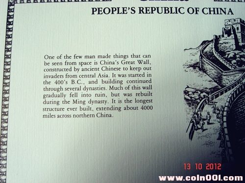 美國羅德島州普羅維登斯造幣廠于83年發(fā)行的“聯(lián)合國國旗系列郵票”郵幣卡,有三個看點:1、首發(fā)日郵戳,1983年9月23日;2、從鋼印處編號及年份看,應(yīng)該是先有幣卡,然后又在卡上粘貼郵票,蓋銷,類似于美國另一家造幣廠富蘭克林造幣廠的做法;3、英文介紹中明確提出:長城是少數(shù)從太空可以看到的人造物體之一,不知是否最早提出。目前又否認了這一說法,如果不是最早提出,那這一說法最先出自何處呢?