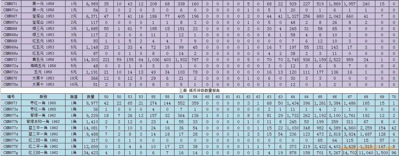 PMG紙幣評(píng)級(jí)數(shù)量報(bào)告