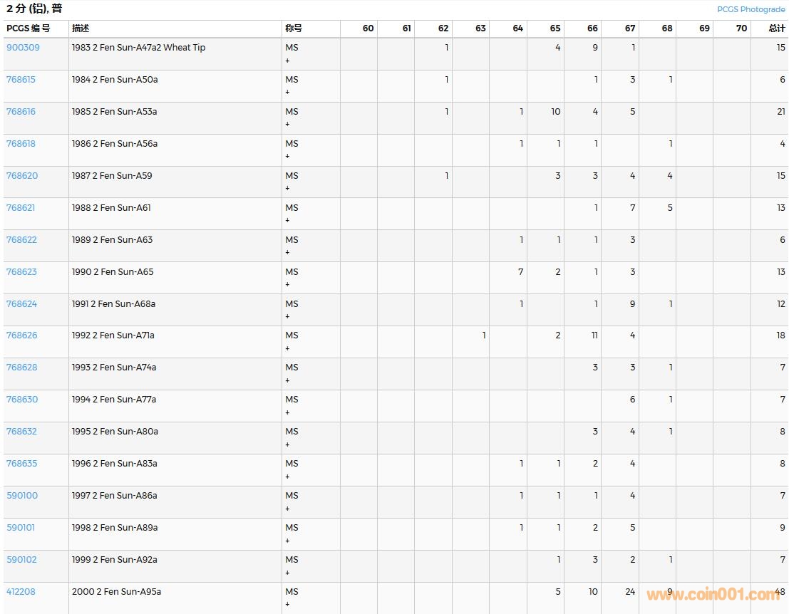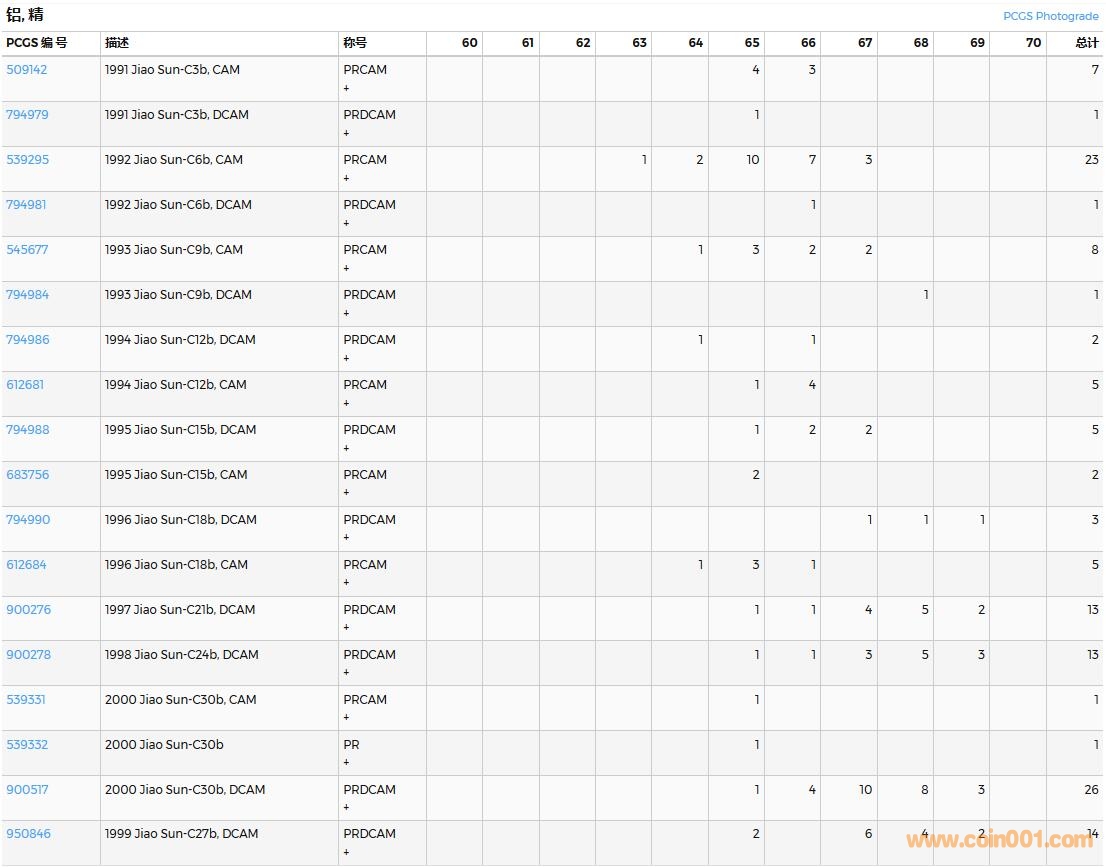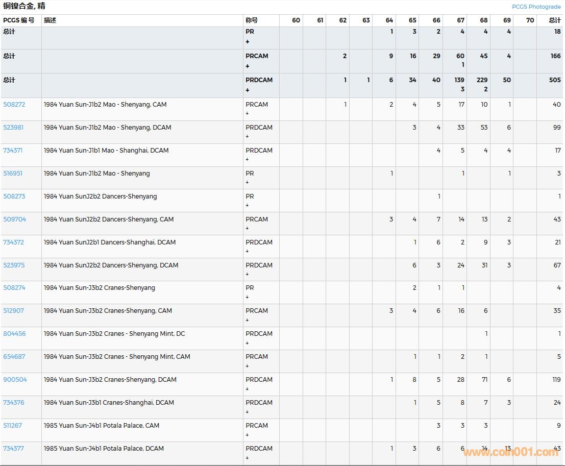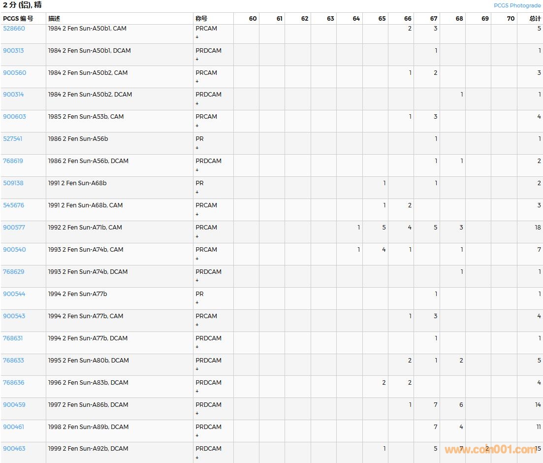 PCGS硬幣評(píng)級(jí)數(shù)量報(bào)告( ..
