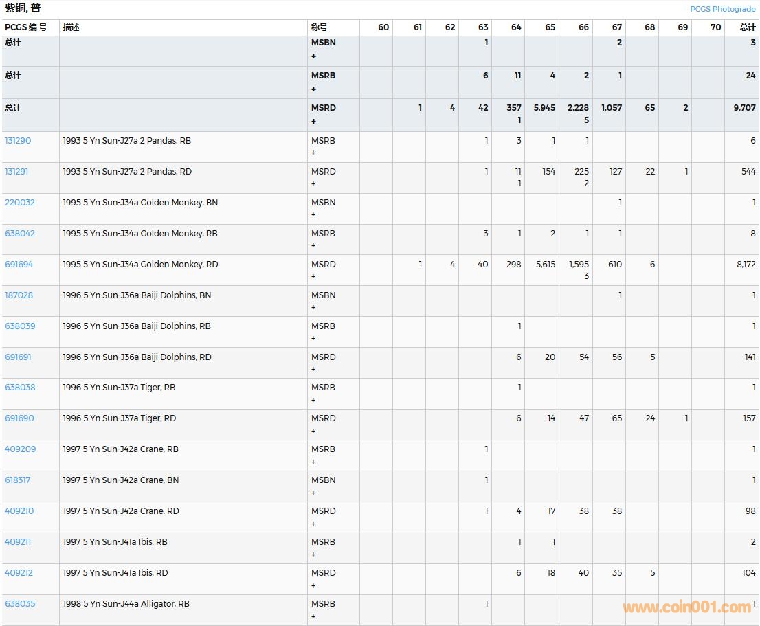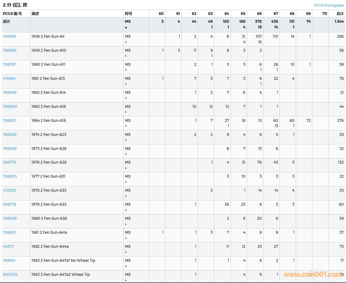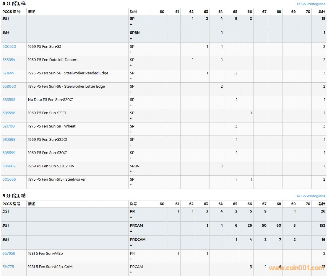 PCGS硬幣評(píng)級(jí)數(shù)量報(bào)告( ..