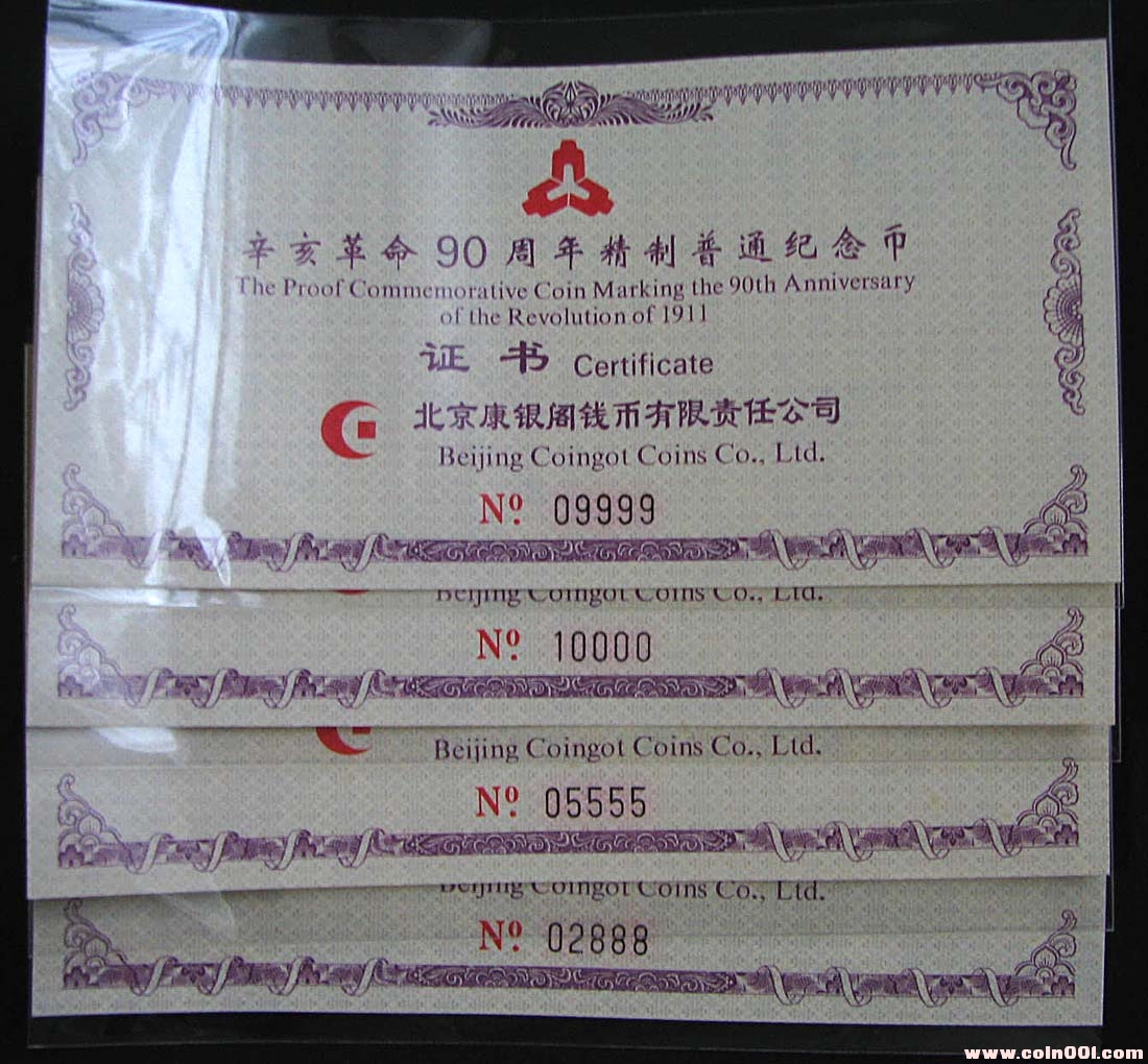 精制辛亥紀(jì)念幣證書 ..
