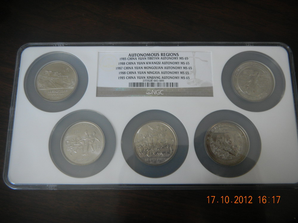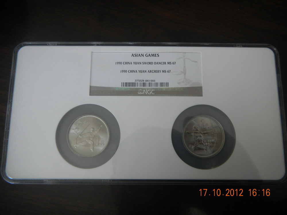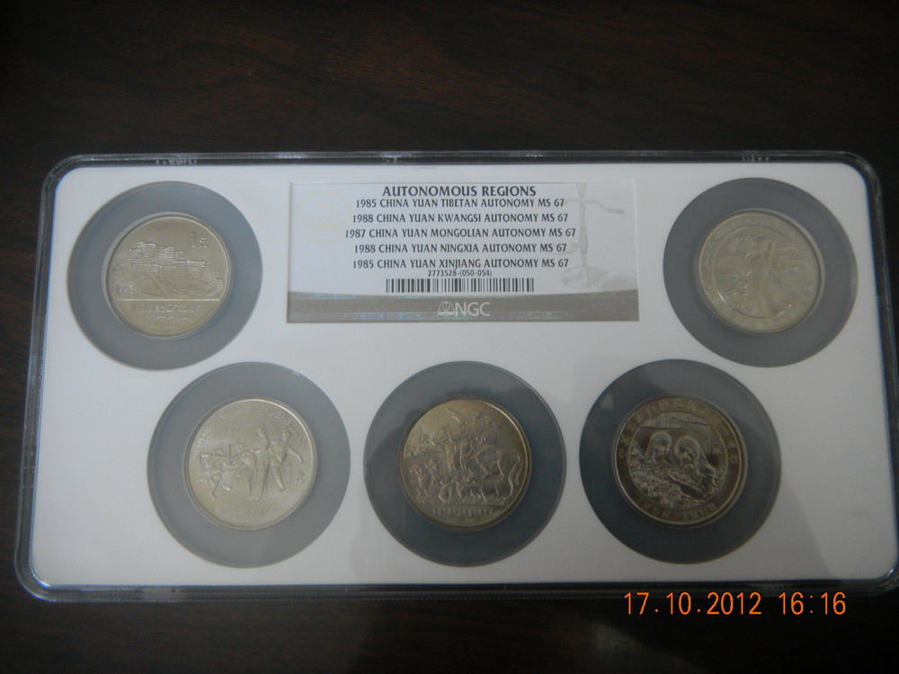 67分NGC多幣封裝紀(jì)念幣,每個品種多幣封裝,市場上單枚的NGC評級幣常見,但打成多幣的很少見,同分?jǐn)?shù)多幣的更是少見,以下紀(jì)念幣同分?jǐn)?shù),全部為67分。六運會:2880元,三枚裝;35周年:2780元,三枚裝;亞運會:1880元,兩枚裝;五大自治區(qū):6880元,5枚裝。