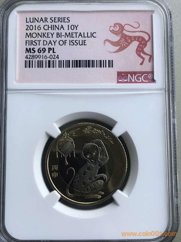 出售MS69PL首日猴!二輪生肖首日第一枚!