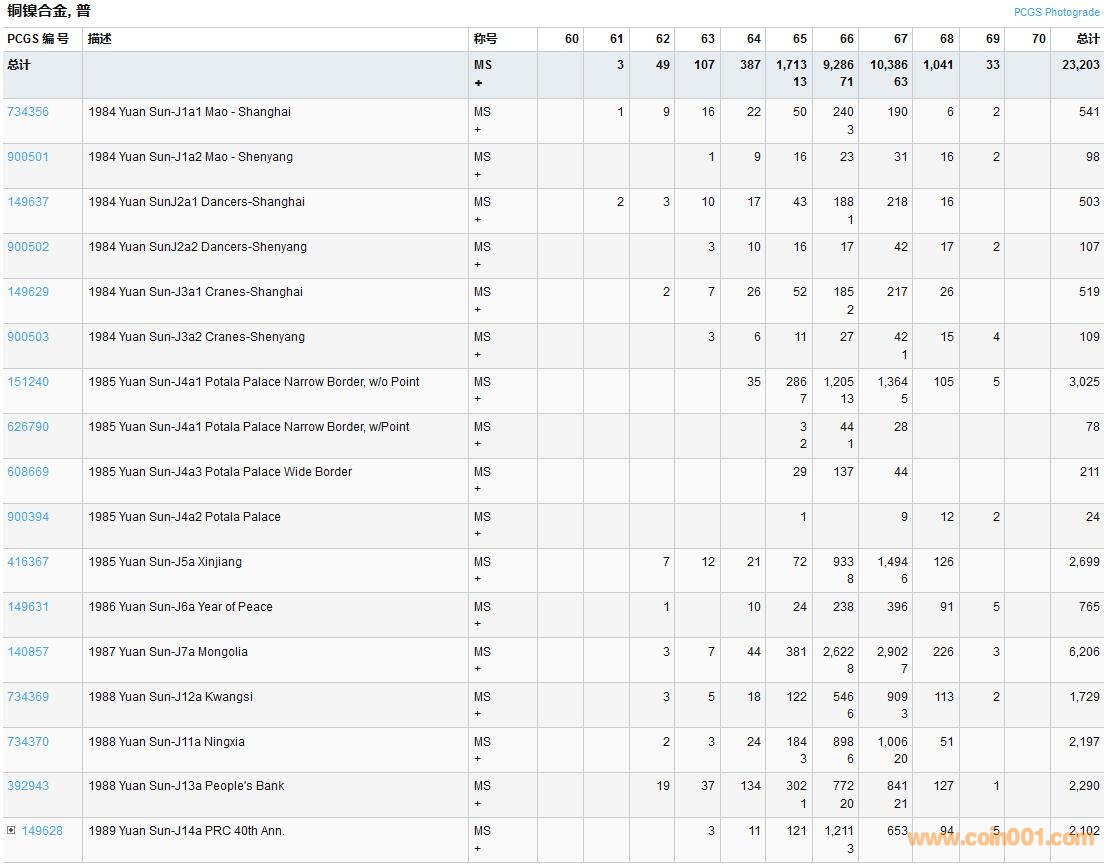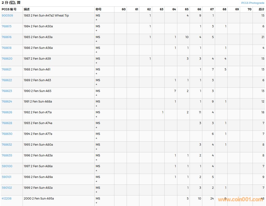 PCGS硬幣評(píng)級(jí)數(shù)量報(bào)告( ..