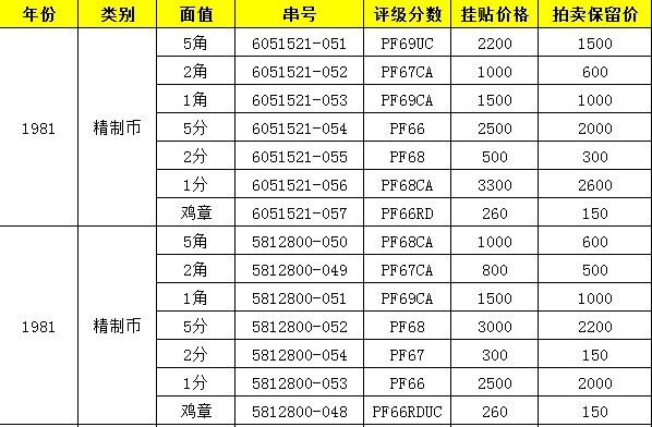 出1981年精制評(píng)級(jí)幣