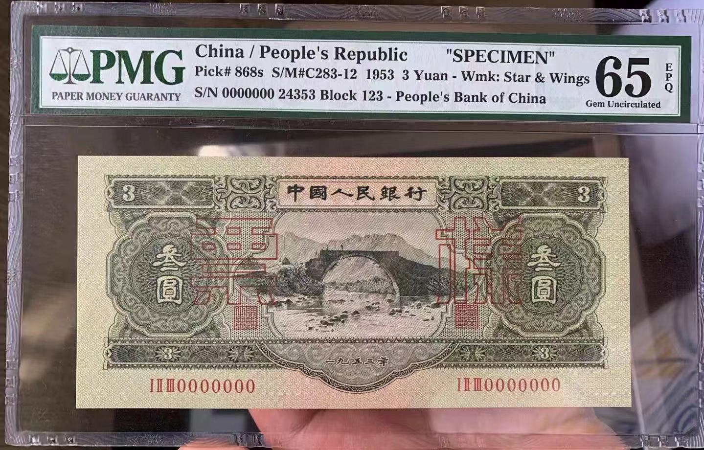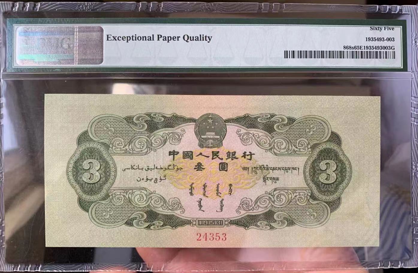 綠三元票樣 PMG65EPQ