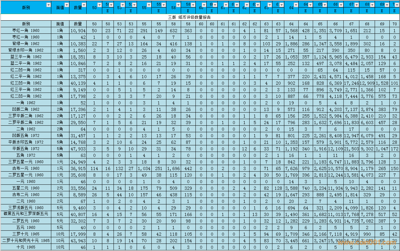 PMG紙幣評級數(shù)量報告