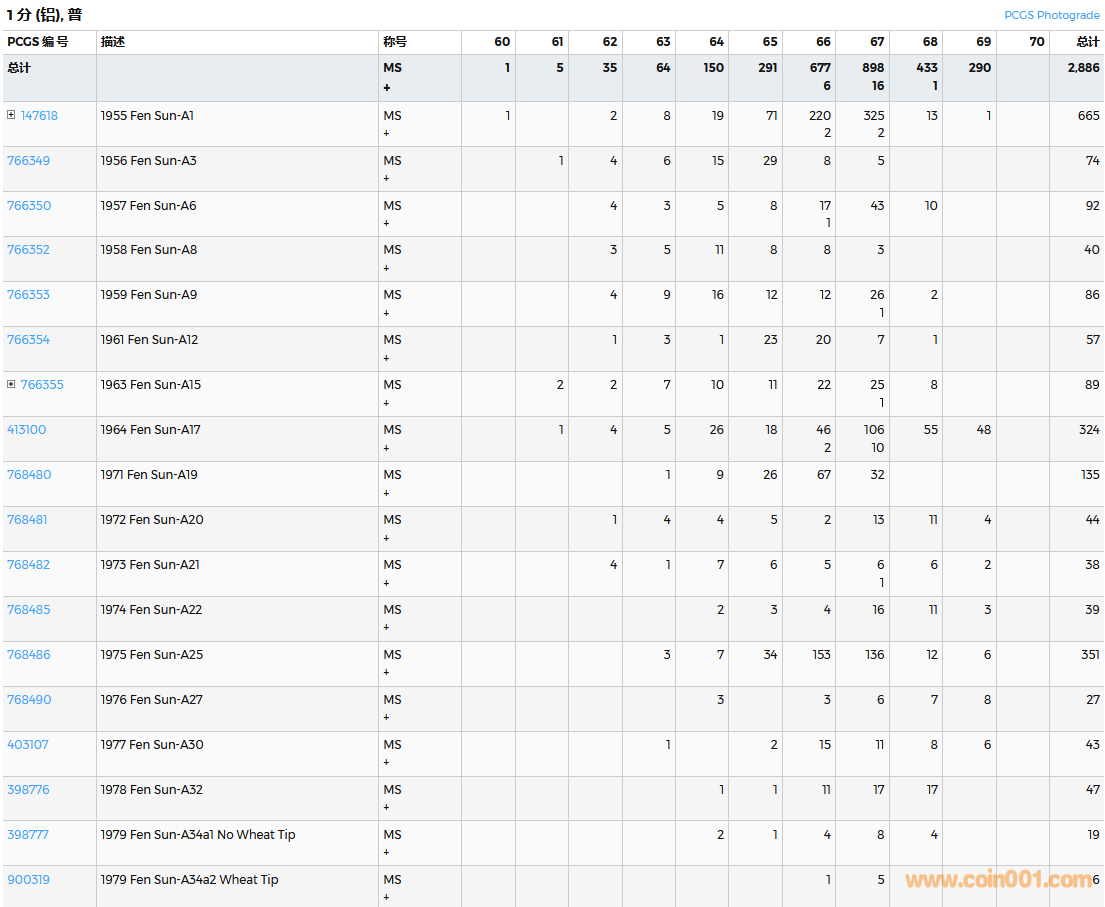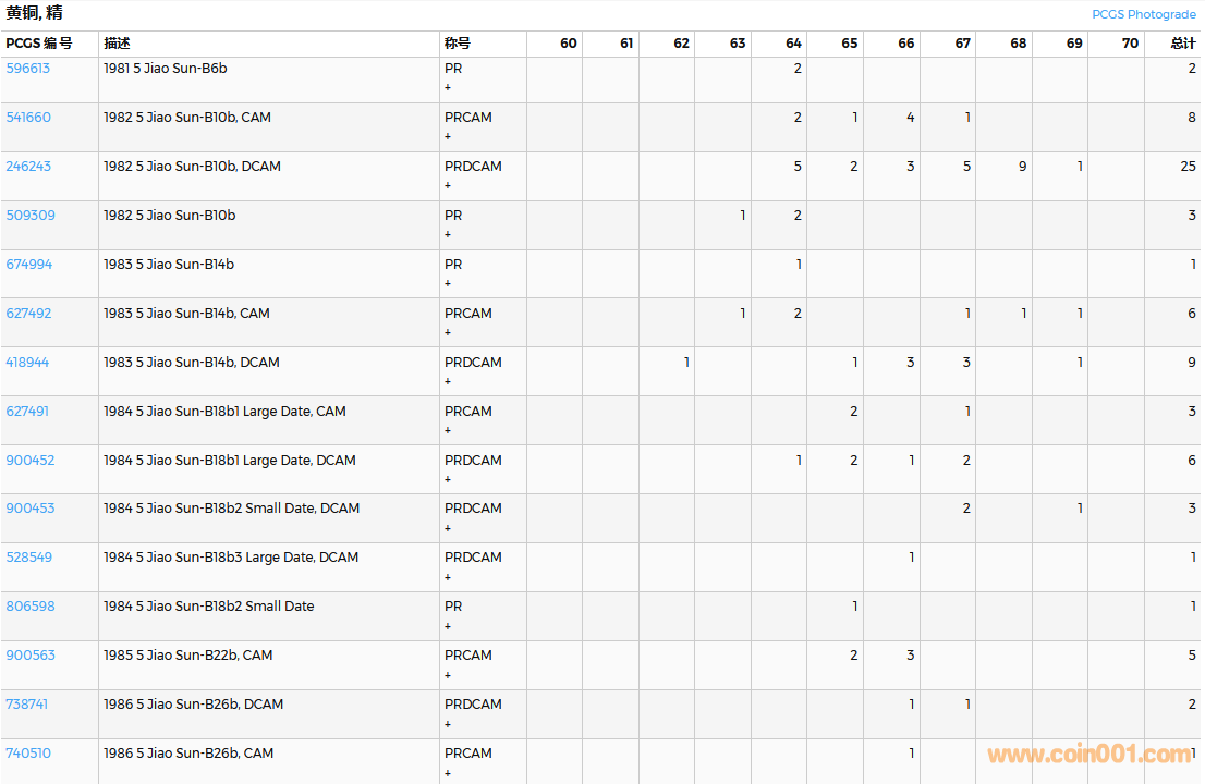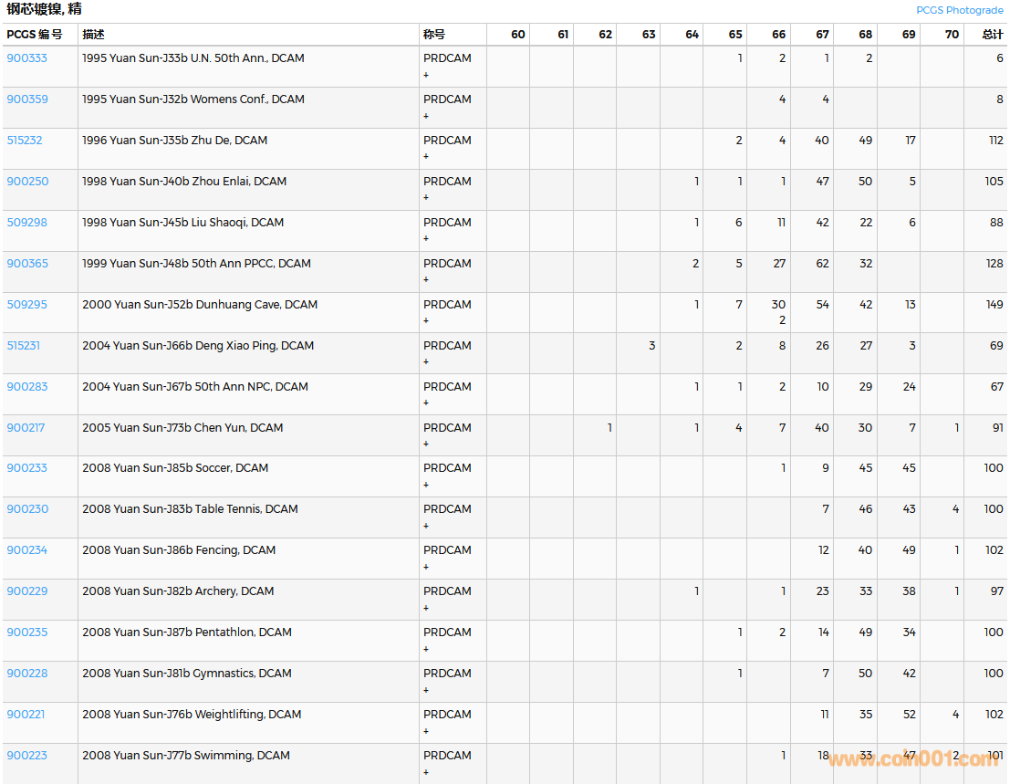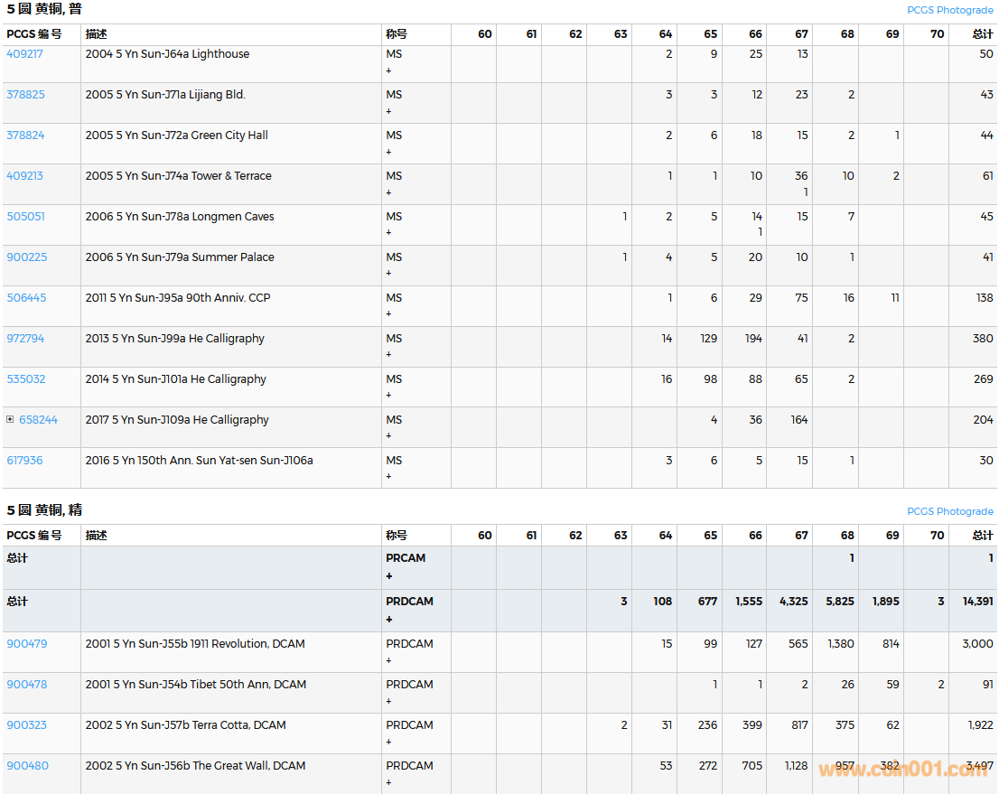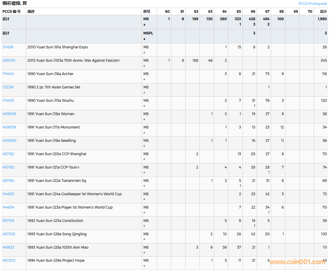 PCGS硬幣評級數(shù)量報告( ..