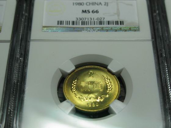 1980年長(zhǎng)城幣2角(黃銅 ..