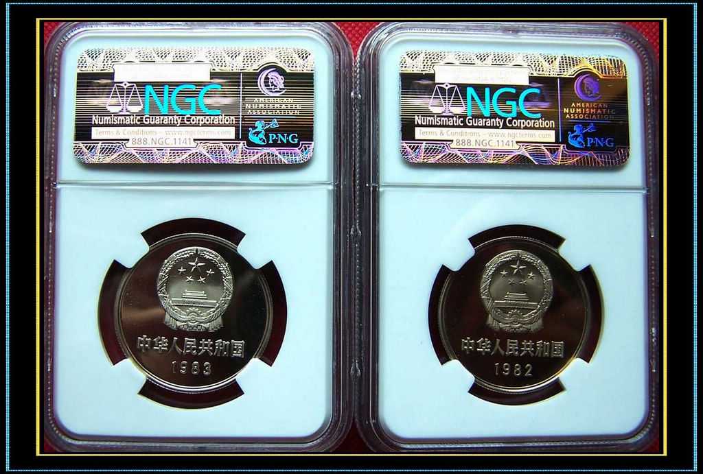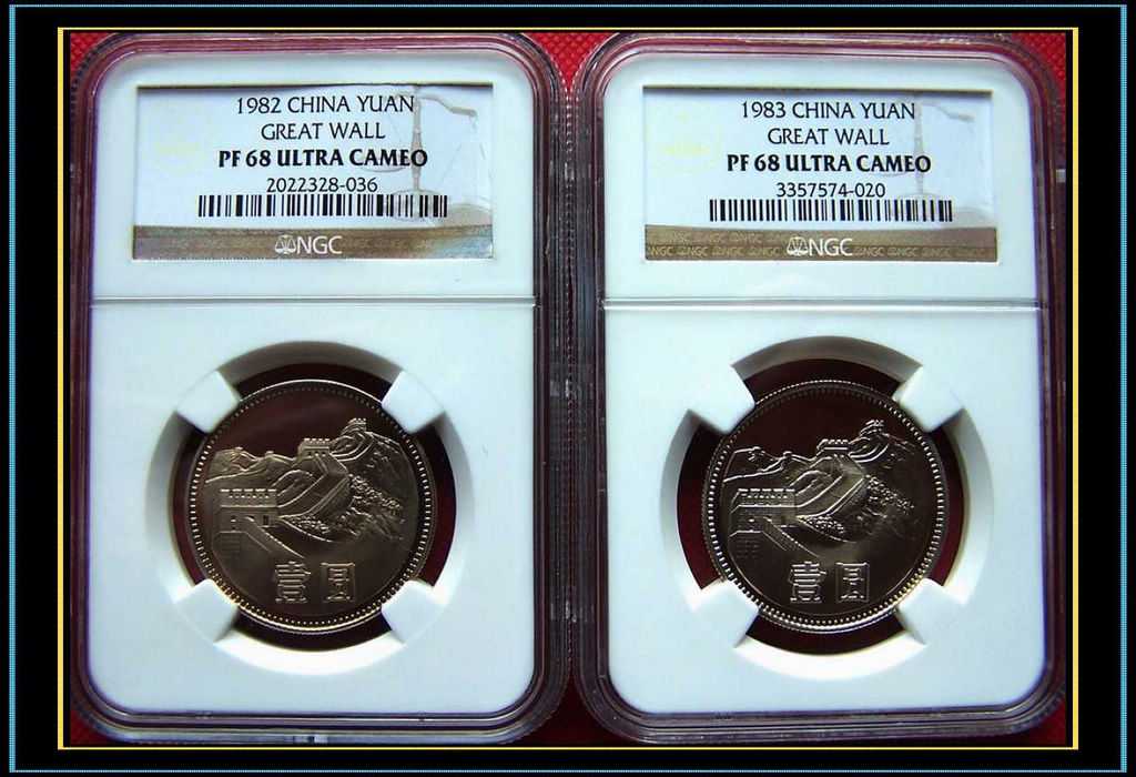 1982年、1983年精制長(zhǎng)城幣壹元NGCPF68UC評(píng)級(jí)幣各壹枚